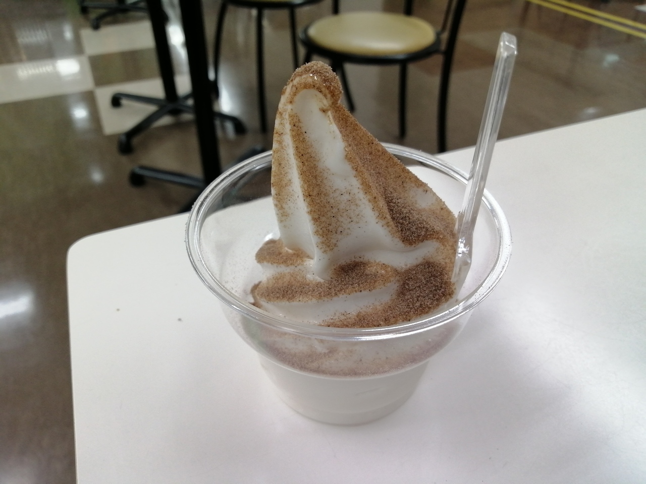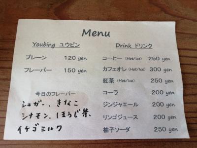 さて、「ユウピン」の油餅はツイストされたドーナツの様な…揚げパンのような…。プレーン、シナモン、ほうじ茶、イチゴミルクを購入しました。お値段はプレーン120円(税込)、その他(フレーバー)150円。週替りで種類が変わります。フレーバーはプレーンにその味のパウダーが別に付くだけです。パウダーは自分で“シャカシャカ”します。食感はもっちりでおいしいと思いますが、ちょっと油っこいかなと。