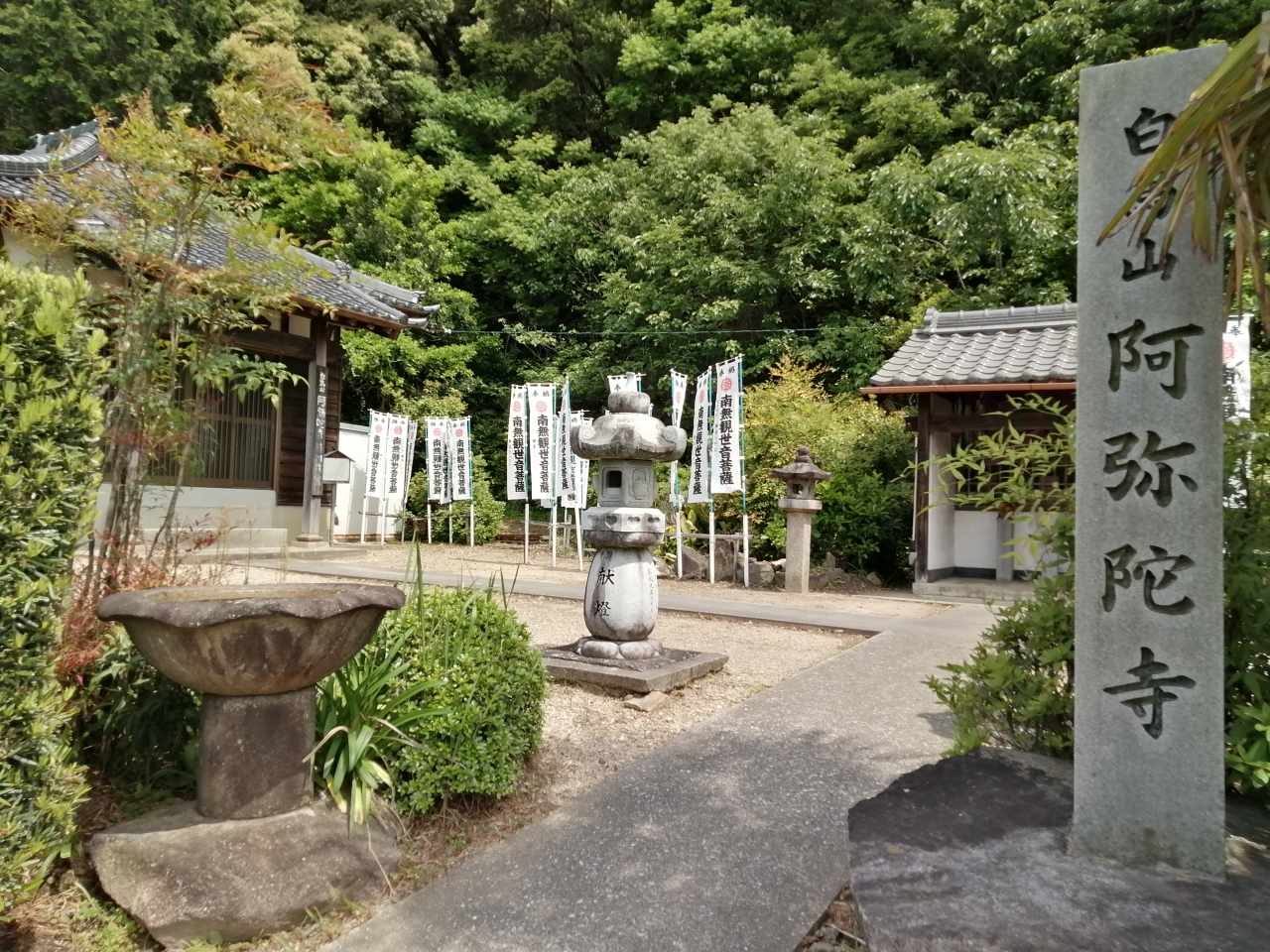 一畑山薬師寺の駐車場からではなく、麓から直接登って行ってみました。登り口は国道1号線沿いの「白馬山 阿弥陀寺」。小さな寺でGoogle mapには載っていません。住所は愛知県岡崎市市場町町裏49-3、津島神社の西隣りです。社殿前に山に入る道があります。整備された登山道ではないので足場は悪いですが登りは最初だけ。あとはなだらかなアップダウンのある道です。標高約170mの山なので20分ほどで到着します。