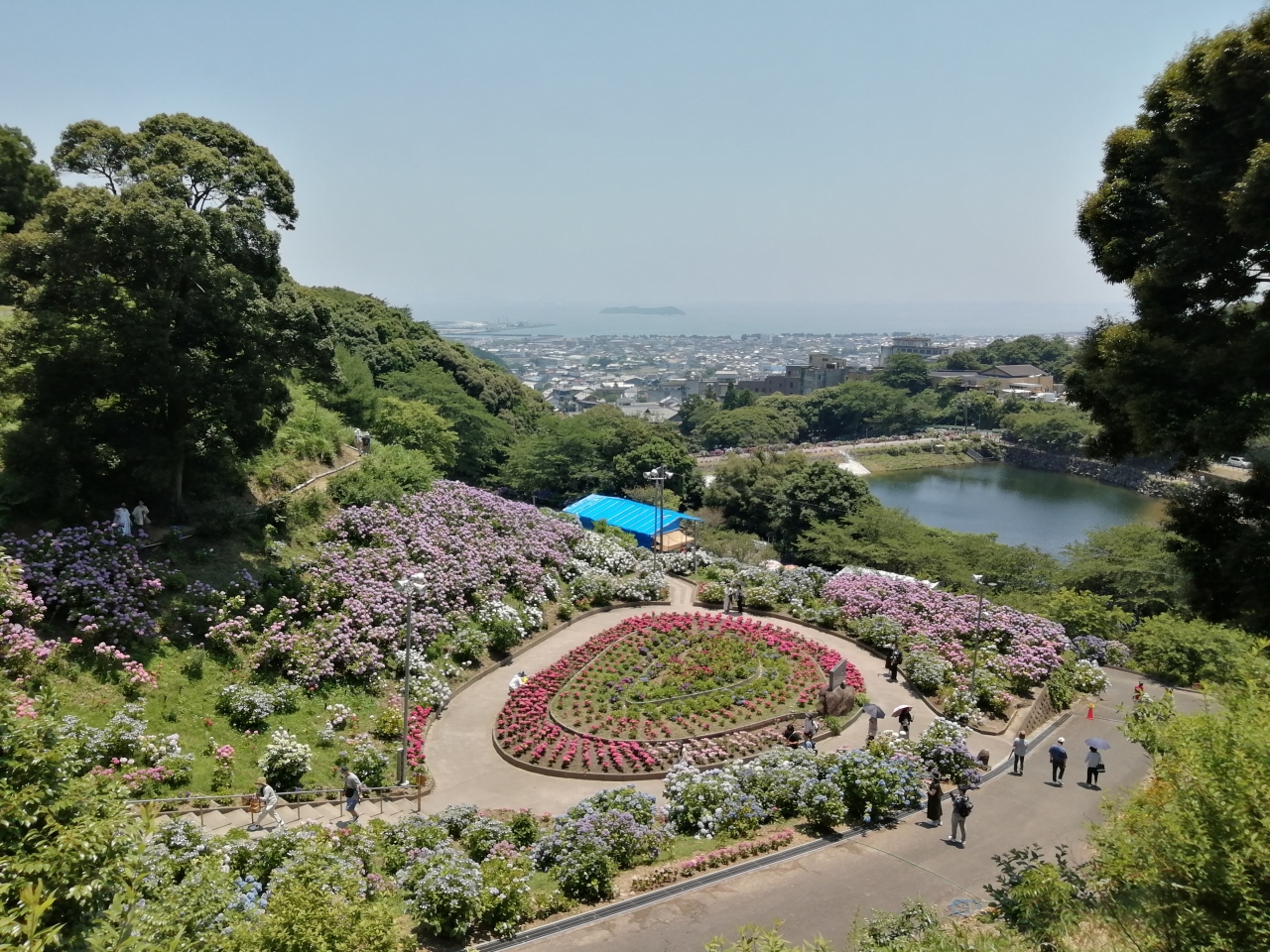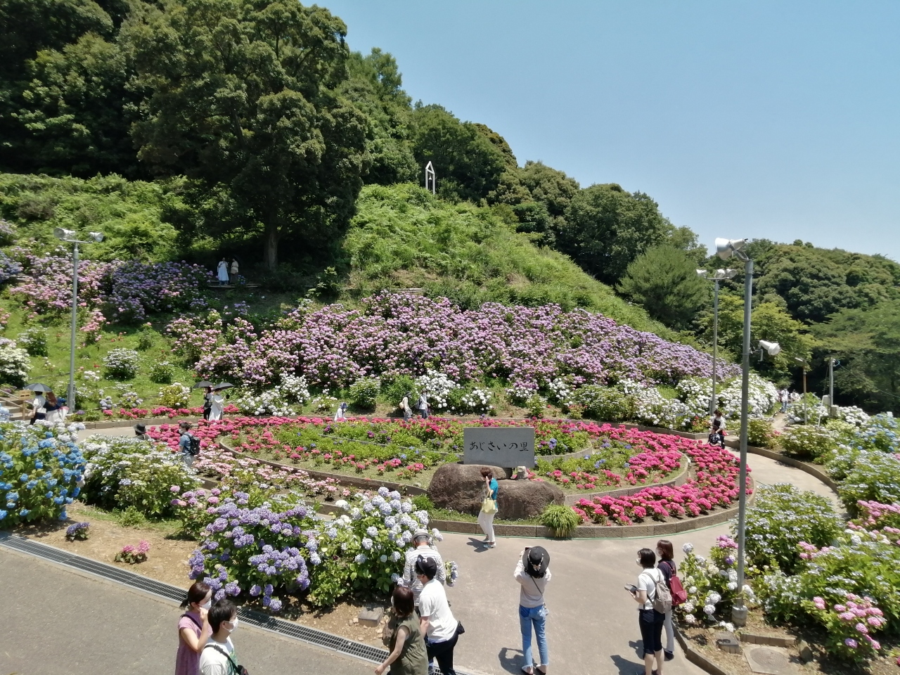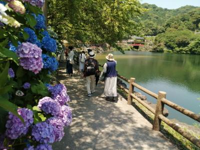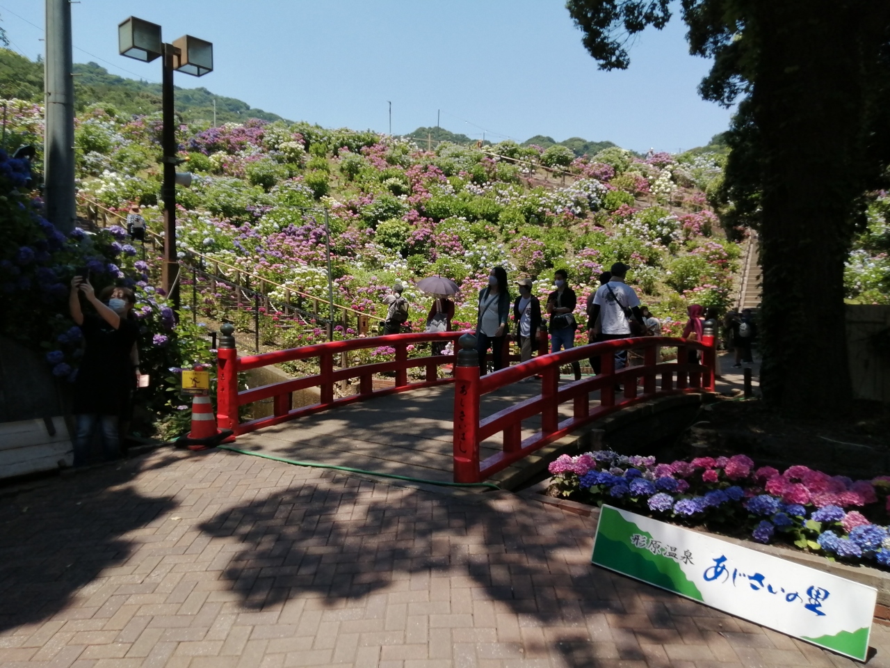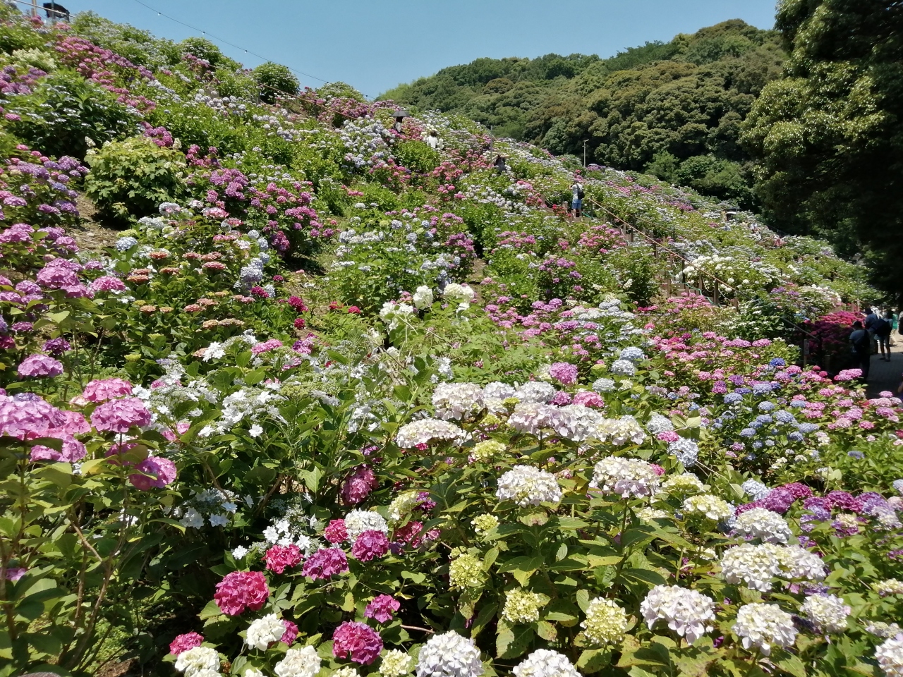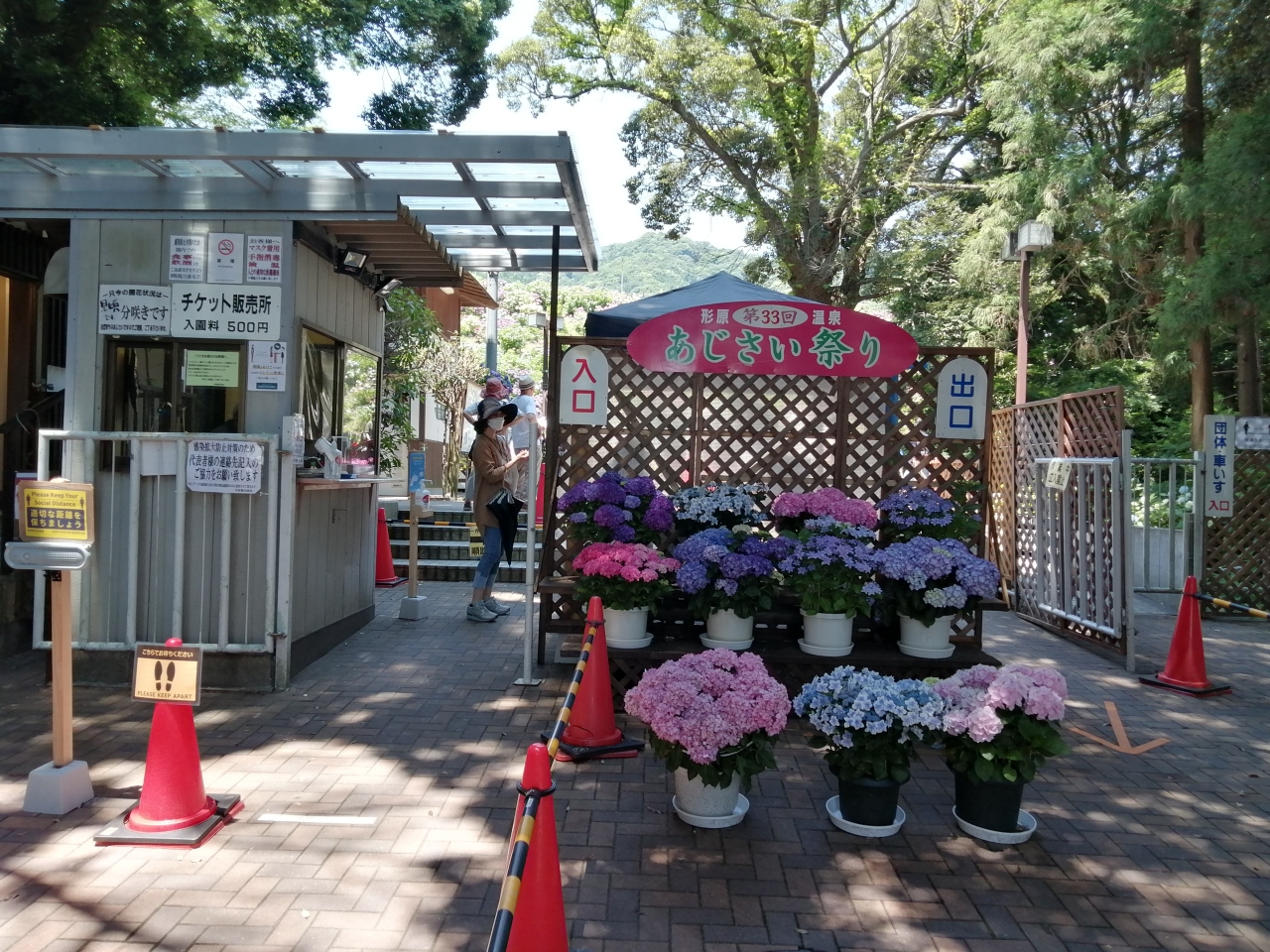毎年6月の1ヶ月間、形原温泉あじさいの里で開かれます。人混みを避けるため平日に行ってきました。このあじさい祭りはこの近辺、愛知県下ではかなり知られておりJR蒲郡駅から臨時バスも運行されるほど。5万株のアジサイが咲き誇るさまはなかなかのもんです。特に補陀ヶ池の遊歩道で「日本のあじさい展」と銘打って展示されたあじさいがよかったです。かわいらしいものから妖艶なものまで珍しくも美しいあじさいが堪能できました。入場料500円かかりましたが、十分に元は取れたと思います。