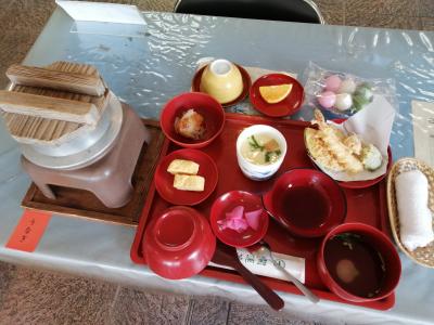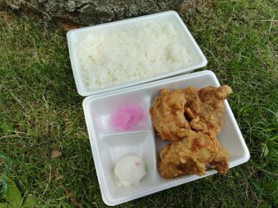 内容は大きなからあげ3個、ポテサラ、桜漬け、ご飯とシンプルですがこれで330円はお得だと思います。からあげは塩コショウがかかっていました。揚げたてはおいしいです。量も少食の私にはぴったり。ですが…欲を言えばソースかケチャップもほしかった。これは個人の好みの問題ですが…。持ち帰って家で食べれば問題なしです。- 旅行時期