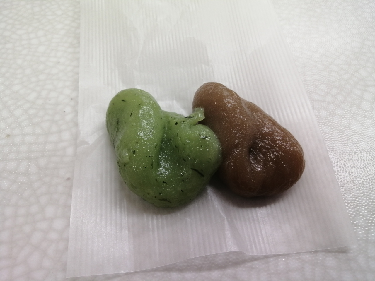 店内を見渡してもそそられるものがなかったので、「しんこ餅」なるものを買ってみました。1個税込60円。たぶんこの店の最安値商品かも。上新粉に砂糖を練り合わせたシンプルなものです。花見だんごと同じですね。お味と食感は想像どおりです。あえておすすめはいたしません。- 旅行時期