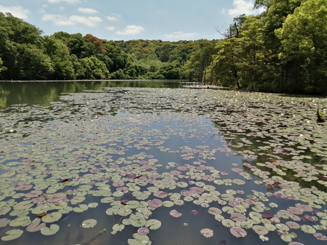 池の奥には立ち枯れの木もあり、季節と時間によってはとても幻想的な光景が見られるようです。