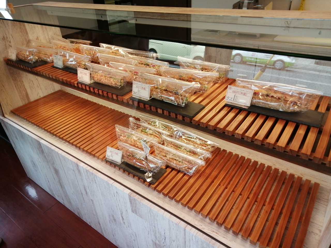 2019年いっぱいでパン屋としては閉店しましたが、2021年1月にサンドイッチ専門店に生まれ変わり再オープンしています。評判も上々のようなのでちょっと出かけてみました。事前にメニューをチェックして行ったのですが、目当ての「台湾焼きそば」はなんと販売中止とのこと。問合わせが多数あるようなので再開するかもしれないらしいです。仕方ないので人気No.1とすすめられた「ソーセージサンドイッチ」(税別380円)を購入。