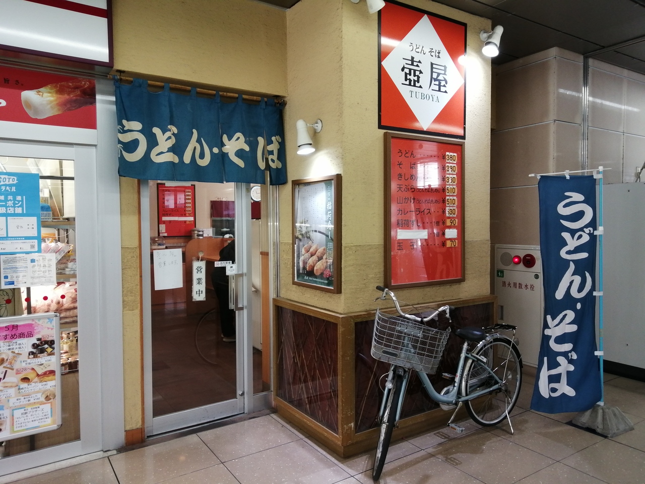 JR蒲郡駅構内にあるうどん、そばの店です。場所は改札向かってすぐ右手。店内にある食券機で先に食券を買います。「うどん」(税込380円)と稲荷寿司(1個90円)をチョイス。きしめんもあります。駅のうどん屋らしくカウンター立ち食いのみです。