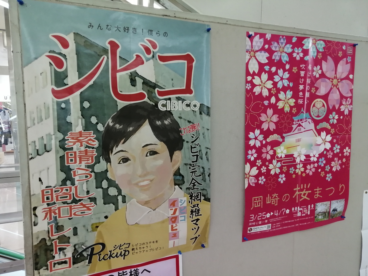 シビコ…岡崎の中心街にあり、かつては“買い物”と言えばここでした。今は郊外にいくつものショッピングエリアができ、中心街と共にすっかり廃れてしまいました…と思っていたのですが超久々に訪れてみたら、まだまだ頑張っていました。以前より規模を縮小し、“田舎のデパート”感は否めませんがひと通り店は揃っているし、スペースを贅沢に使ったレイアウトで(テナントが少ないためです)、イ○ンモールなんかと比べるとみょ~に落ち着くというか、居心地がいい。客層はお年寄りの方が多く、皆そう感じているのかなと思います。意外にも地下にはスーパーができていたし、ダイソーも入ってました。全然便利だと思います。