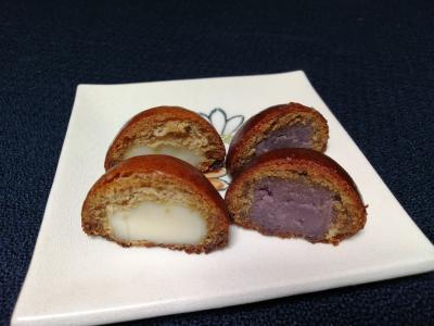看板商品の1つで手頃な「かりんとう饅頭」目当てにおじゃましました。“レギュラー”はこしあん入りですが季節商品としてチーズ入りもあったので両方購入(1個税別120円)。他に季節によりチョコ、桜、抹茶、レモン、芋が楽しめるようです。