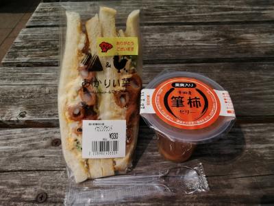 ツーリングの途中に立ち寄りました。ツーリングと言ってもチャリですが…。なかなか充実した道の駅です。お昼ごはんを物色。ちょっと珍しかった「イカリングサンド」とせっかくなので幸田の特産品である筆柿をつかったゼリーを購入。ゼリーは奮発して30円高い果肉入りにしてみました(税込230円)。