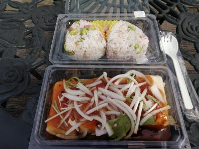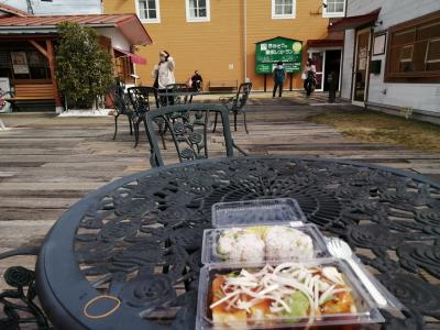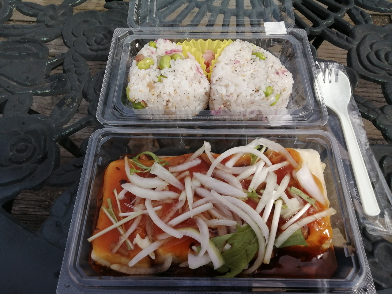 1階のショップでお昼ご飯を物色。店内で作ったお弁当や惣菜があるのが魅力です。せっかくなので豆腐を買わなきゃ。ということで、「揚げ出し豆腐」(税抜230円)と「じゃこ梅おにぎり」(税抜200円)を購入。“タウン”内のテーブルでいただきました。揚げ出し豆腐は大きな豆腐が軽めに揚げてあり豆腐の味がしっかりと堪能できます。この値段でこの量と味を知ってしまうと、もう居酒屋では食べる気にはならないかも。おにぎりはじゃこの量が今ひとつでしたが枝豆がゴロゴロ入っていて一足先に春を感じられるお味でした。お腹いっぱい。大満足のランチとなりました。- 旅行時期