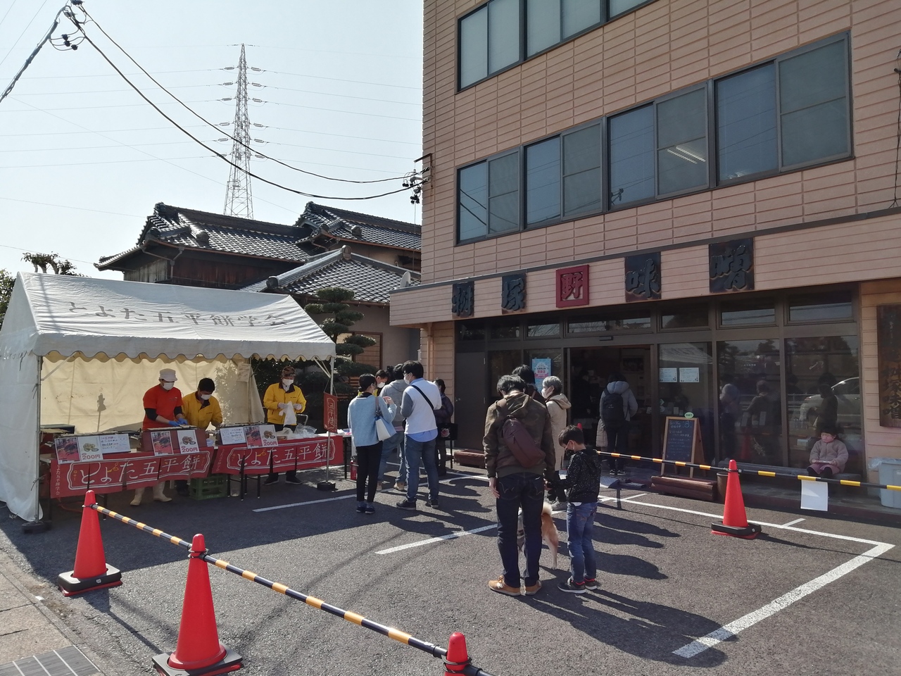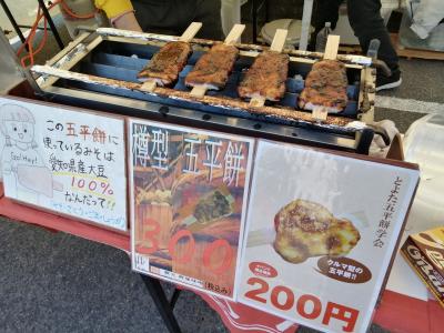 岡崎の八丁味噌は有名ですが、こちらでも八丁味噌を製造しています。たまたま訪れたのが第3土曜日。毎月この日は店の前で五平餅を焼いているようです。