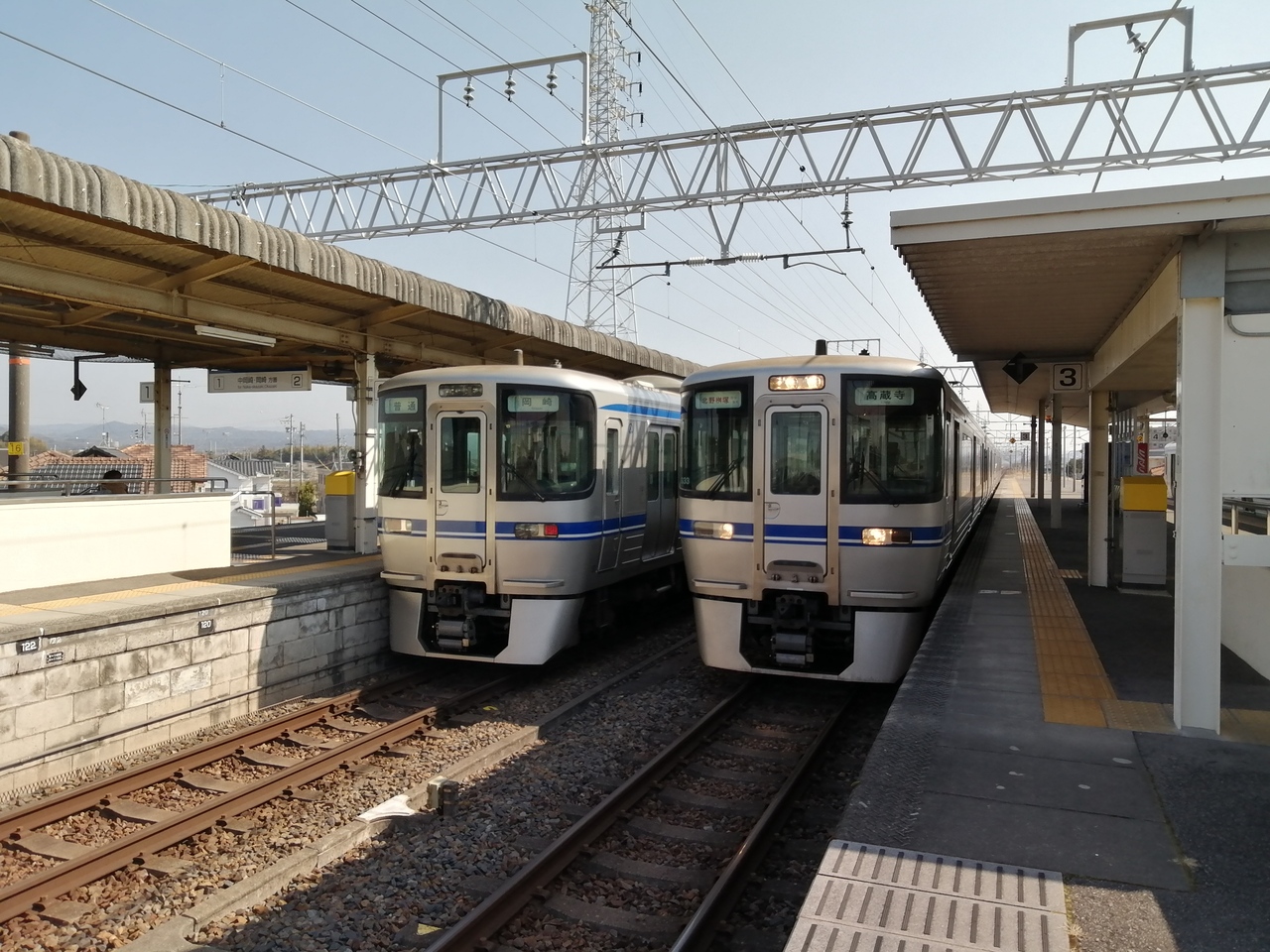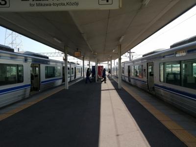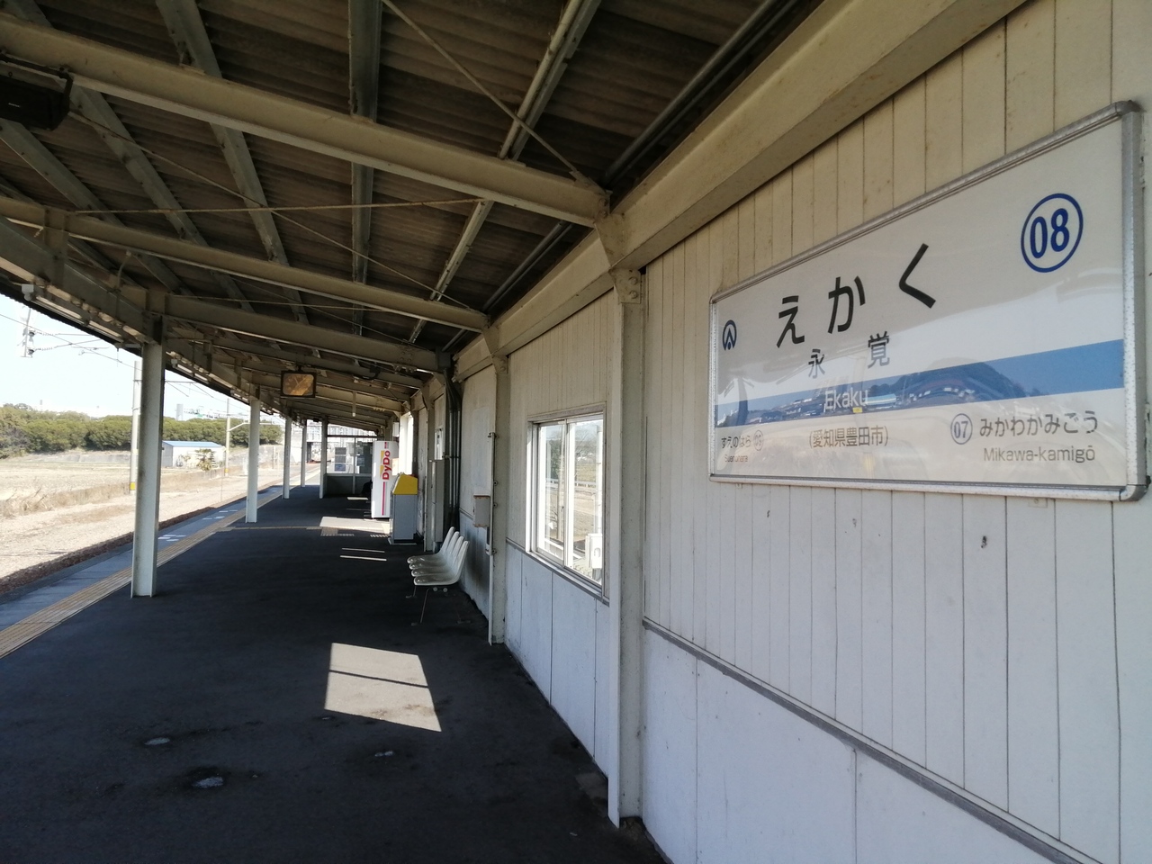 が、駅はなかなか立派です。ちゃんと自動券売機もありますw。自動改札はありませんが…。この辺りが愛知環状鉄道らしいところでしょうか。ホームに上がってみるとやっぱり他の駅とは違う…。線路が4線あり島型ホームが2つ、乗り場は4つと堂々たるものです。ホームの端からは車両基地も見ることができます。- 旅行時期