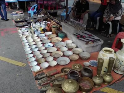 ●3階の骨董屋の店先に各国の古銭が盛られています。眺めていたら1円、10円、100円玉が…特に100円、買い占めれば一獲千金かと期待が膨らみましたが、店主に値段を尋ねるとどれも1枚5RMだと。現在のレートで約130円。あかんやん。けどよーく探せば500円玉があるかも。まだまだチャンスは残されています。
