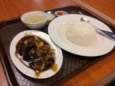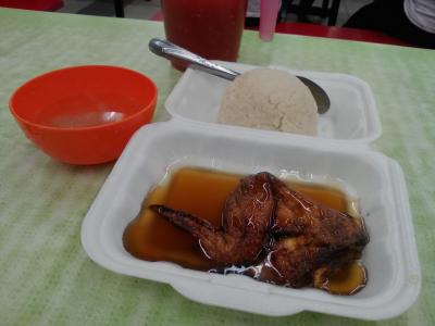 スリアサバF3(4階)にあります。夕食を食べに行きました。「Hing's Corner」という店でチキンライスを食べることに。メニューは壁に掲げられています。その中から「BBQ Honey Chicken Rice」5.5RM(約143円)をオーダー。はちみつに浸けた鶏肉をローストしたものだと思います。基本どれでもこの店特有の照り焼きのタレのようなものをドバドバかけられてしまうので、どれをオーダーしても味は大差ないかなと思います。けど普通においしいです。