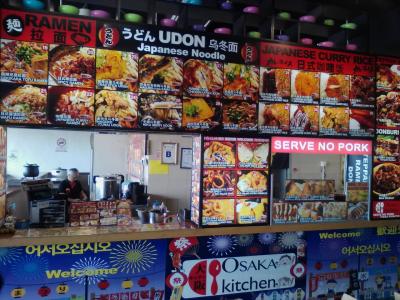 一画にはど派手な看板の「OSAKA Kitchen」なる店があります。ラーメン、うどん、カレーライスなどメニューの写真ををみるとかなりなんちゃって度が高めな気がします。食べてないので実際のところはわかりませんが…。
