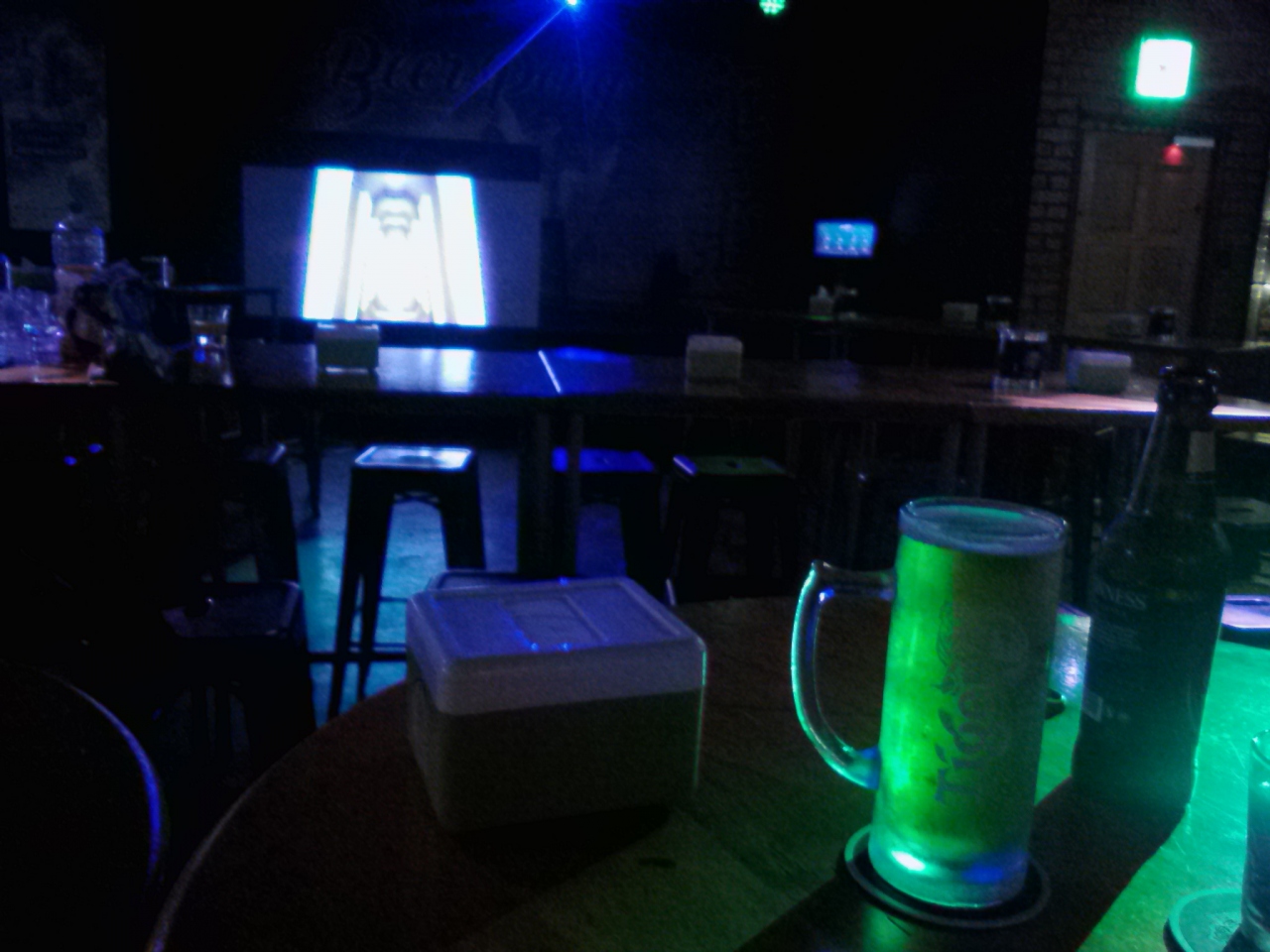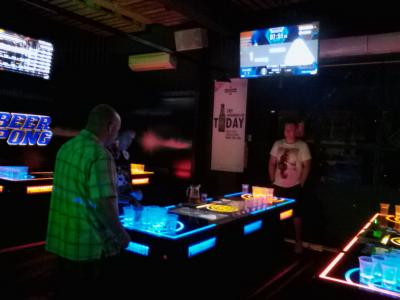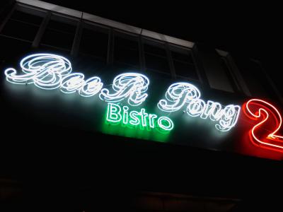 「Beer Pong 2 Bistro」というカラオケバーに行ってみました。場所はウォーターフロントにある中国寺院トゥア・ペッ・コン(大伯公)の裏手にある福建公會の1階です。登録されているのは市街の南5〜6kmにある本店(1号店)でこちらは2号店になります。本店に比べると店の雰囲気、客層もカジュアルな感じそうで入りやすいかなと思います。カラオケは無料で歌いたい放題ですが日本語の歌があるかは不明。マレー語、英語、中国語の歌はあります。曲名を紙に書いて店員に渡すシステムですが“歌本”がないので選曲しにくいです。もう一つのウリは店名にもなっている「Beer Pong」。テーブルの両端に置かれた水の入ったカップにピンポン玉を投げて入れあうパーティーゲームです。欧米人が一組遊んでいました。ビールはギネスの小ビンが16RM、タイガーのグラスが15RM。朝の4:00頃までやっているようなので興味のある方はどうぞ。