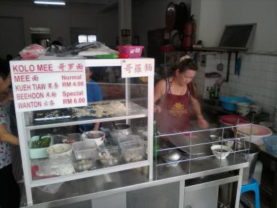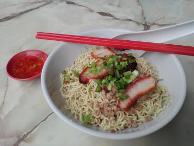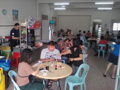 宿の人に教えてもらったサラワク名物コロミーのおいしい店です。最初は12:30頃行き売り切れ、11:00頃になくなると言われたので10:45頃行くとまたも売り切れ、3度目の正直9:45に行ったらちゃんと食べられました。確かにこの時間は客が多く混んでいました。コロミーとはチャーシューや豚そぼろ肉が乗った汁なし油麺です。麺はミー(普通の卵麺)、クイティアオ、ビーフン、ワンタンから選べます。ノーマル4RM、スペシャル6RMです。で、ミーのノーマルをオーダー。スペシャルは具にフイッシュボール、エビが足されると思います。お味は…うーむ。おいしいはおいしいのですが同じサラワク名物のラクサに比べると味が直球というかシンプルというか。店によって香味油の違いはあるのでしょうが、要は見たまんまの味です。決しておいしくないわけではないのでお間違えなく。麺の量も多く、油が効いて結構腹にたまります。確実に食べるなら10:00頃までに行った方がいいと思います。朝は6:00頃からやっていると思います。