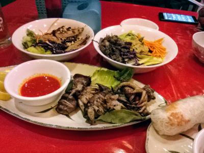 チャイナタウンである亜答街にあるベトナム料理レストラン。店先で炭火でじゅーじゅー肉を焼いていたので、それにつられて思わず入ってしまいました。
