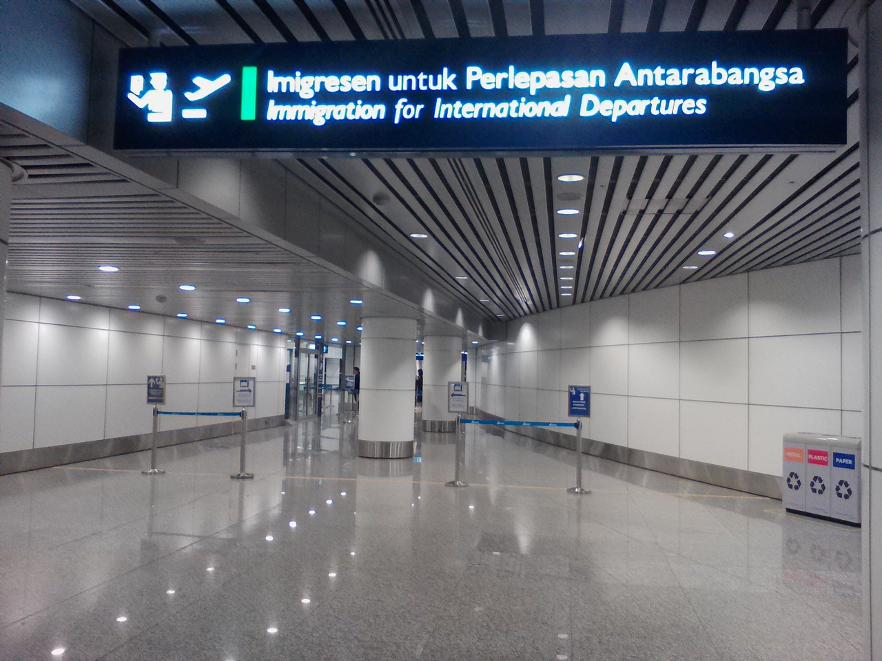 コタキナバルからの国内線からバンコクへの国際線へ乗り継ぎをしました。到着はもちろん国内線フロア。てっきり国際線の出発フロアまで行き、出国審査を受けなければならない思っていたら、国内線フロアに乗り継ぎ専用のイミグレーションがありました。ブースの数が少ないので混んでいると時間がかかるかもしれませんがこの時は人も少なく楽々出国することができました。