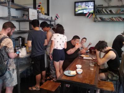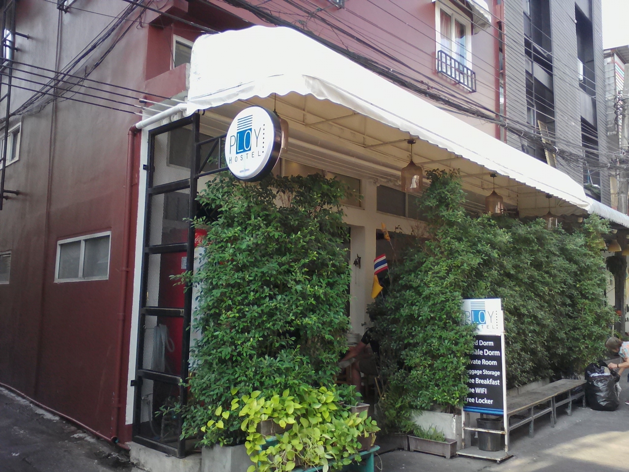 実はこの宿、路地を挟んだ隣りの「Mint Hostel」と同じオーナー。姉妹店のような感じでスタッフが兼用状態。1階の公共スペースはどちらの客でも自由に利用できます。Mintの方がwifiが圧倒的に速いのでそちらでwifiしてました。Ployのドミの中でもMintのwifiに繋げて使っていたくらいです。
