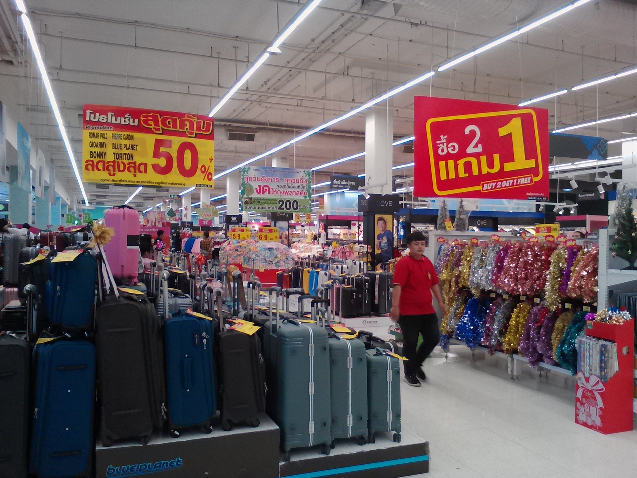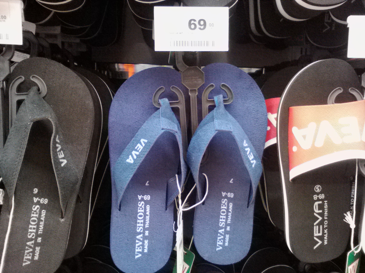 以前(といってもかなり前のですが)、コスパのいいサンダルが買えたことがあったので、バンコクに立ち寄った際にはこのラチャダムリのBig Cでサンダルを買うことにしています。しかし近年不作続き。いいなと思うサンダルはブランド品(有名サンダルメーカー)で300B(約1080円)以上してしまう。さすがに私にとっては消耗品であるサンダルにこの金額は払えません。100B以下の物は便所のスリッパか、いかにも的な物ばかり。頭が痛いです。でなんとかマシな物を見つけました(写真参照)。これで69B(約250円)ならいたし方ない。壊れたらまた買えばいいくらいの金額ですから…。このサンダルはいつまでもってくれるかな…。
