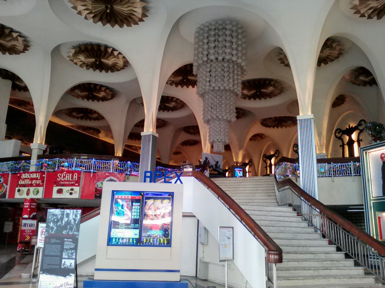 サイアムスクエアの一画にこんな映画館があるなんて知りませんでした。場所はMBK交差点の近く。“若者の街”に目を奪われているとこの地味な外観の建物には気づかないかもしれません。しかし中に入ると一転…驚くべき世界が広がっています。アンティークでノスタルジー漂う雰囲気、そしてゴージャス。シブすぎる…。この映画館、開館したのが1969年と実に半世紀前、内部は席数数が900もあるそうです。まさに現在のシネコンとは対極にある映画館。きっと同じ映画を見ても受ける印象は変わってくるんでしょうね。
