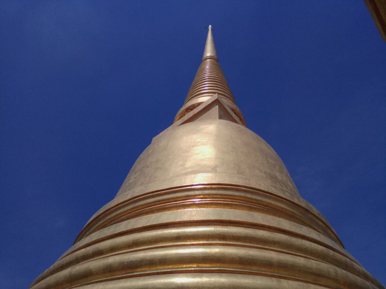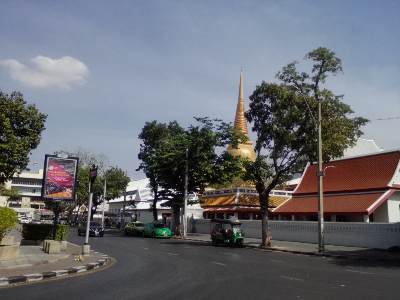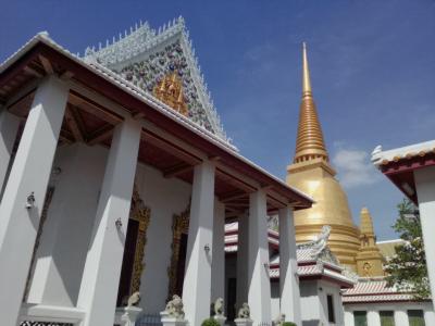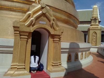カオサン通りの近くにあります。観光スポットとしてはメジャーではありませんが、とても由緒があり格式高い寺院です。この寺院は王に即位する王子が出家し修行する寺院でもあります。いつ訪れても多くの参拝者がお参りに来ています。本堂内部は以前見たので今回は大きな仏塔を見学。参拝者は手を合わせながら塔の周りを回っています。内部に入る入口は4つあるのですが中には入れず。入口でお祈りしている方もいました。