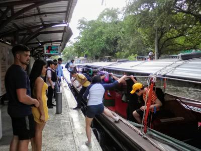 で、ふと思い出したのが運河ボート。しかもMBKからなら「サパーン・フア・チャーン」船着き場がすぐ近く。すっかり忘れてました。すぐにバスに見切りを付け移動。船着き場へは徒歩5分。そしてなんのこっちゃない5分と待たずにボートがやってきました。運河ボートの終点である「パンファー・リーラート」までは10分、そしてカオサン通りまでは歩いて15分。MBKからわずか35分で到着です。少し歩かなければなりませんがいつ来るかわからないバスを待ち、渋滞に耐えなければならないことを考えればボートの方が10倍いいに決まってます。しかもボートの運賃は9B。現在普通バスの運賃は8Bに値上がってしまったのでますます利用価値は高くなったと言えます。- 旅行時期