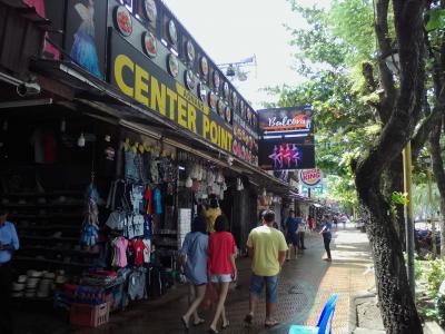 アオナンビーチ沿いはどこも賑やかなので特に中心というポイントは特にないかなと思いますが、実際に「アオナンセンターポイント」と書かれた店?が存在します。単なる土産物屋の一つだと思いますが…。店の横の路地を入っていくと盛り上がれそうな飲み屋エリアになってます。