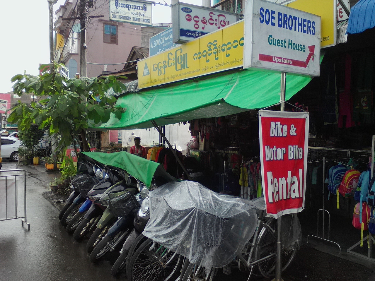 Booking.comやAgodaでも予約できます。予約せずに飛び込みで行った場合はドミ(A/C)は1万k、ダブル(A/C、トイレシャワー付き)は2万kとなります。朝食付き。どちらもこの時見た予約サイトよりは安かったです。立地は市内中心部やや北側。市場が近く、各方面へのバス乗り場(降り場)がある時計塔からも歩いて行ける距離なので立地はいいと思います。ミャンマーで予約サイトを活用してるくらいの宿ですから英語も通じるし、その他対応はちゃんとしてると思います。
