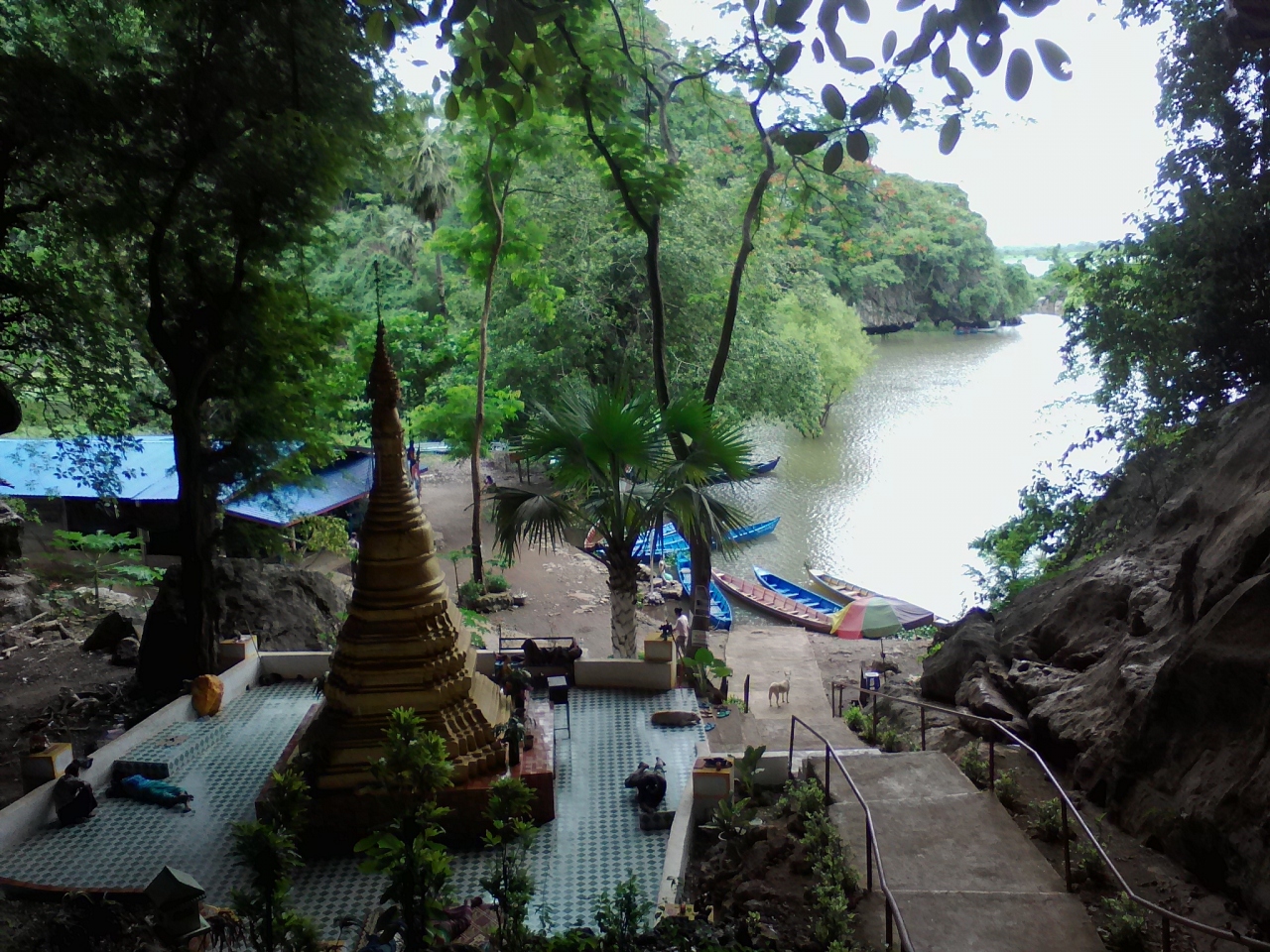 パアン市街の北外れ、サルウィン川沿いにある寺院です。その中心には大きな金ピカのパゴダが建っていますが、それよりも見どころがあるのはなんといっても眺め。やはり川沿いにあるための開放感は抜群で川の向こうに見える独特の形をしたパブー(Pha Bhu)山も一役かっています。パブー山へは寺の裏手から出ているボートで対岸に渡れば(500k)らくらく歩いて行けます。