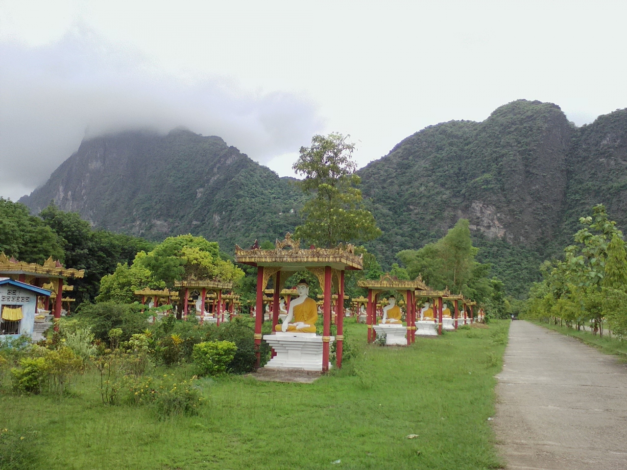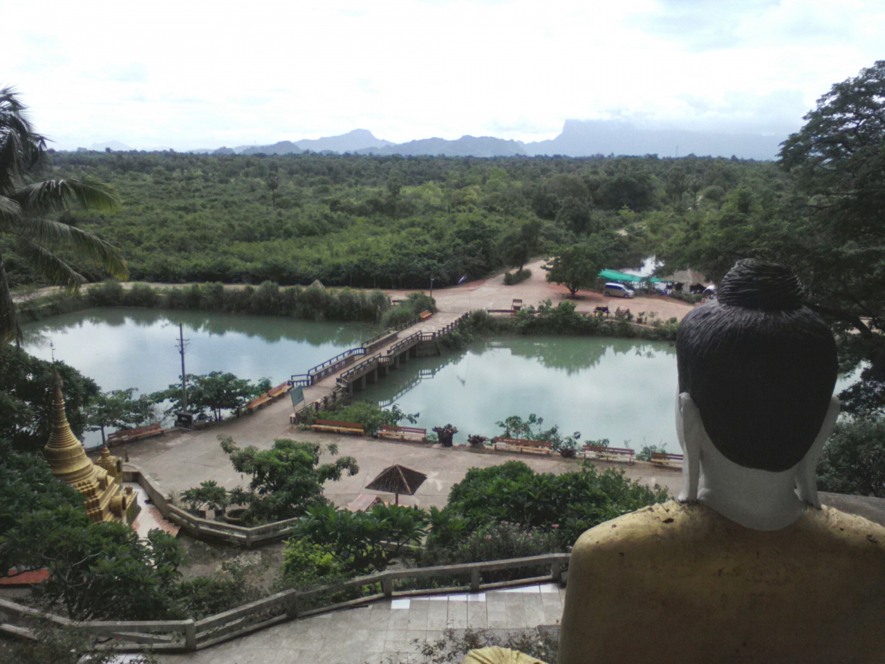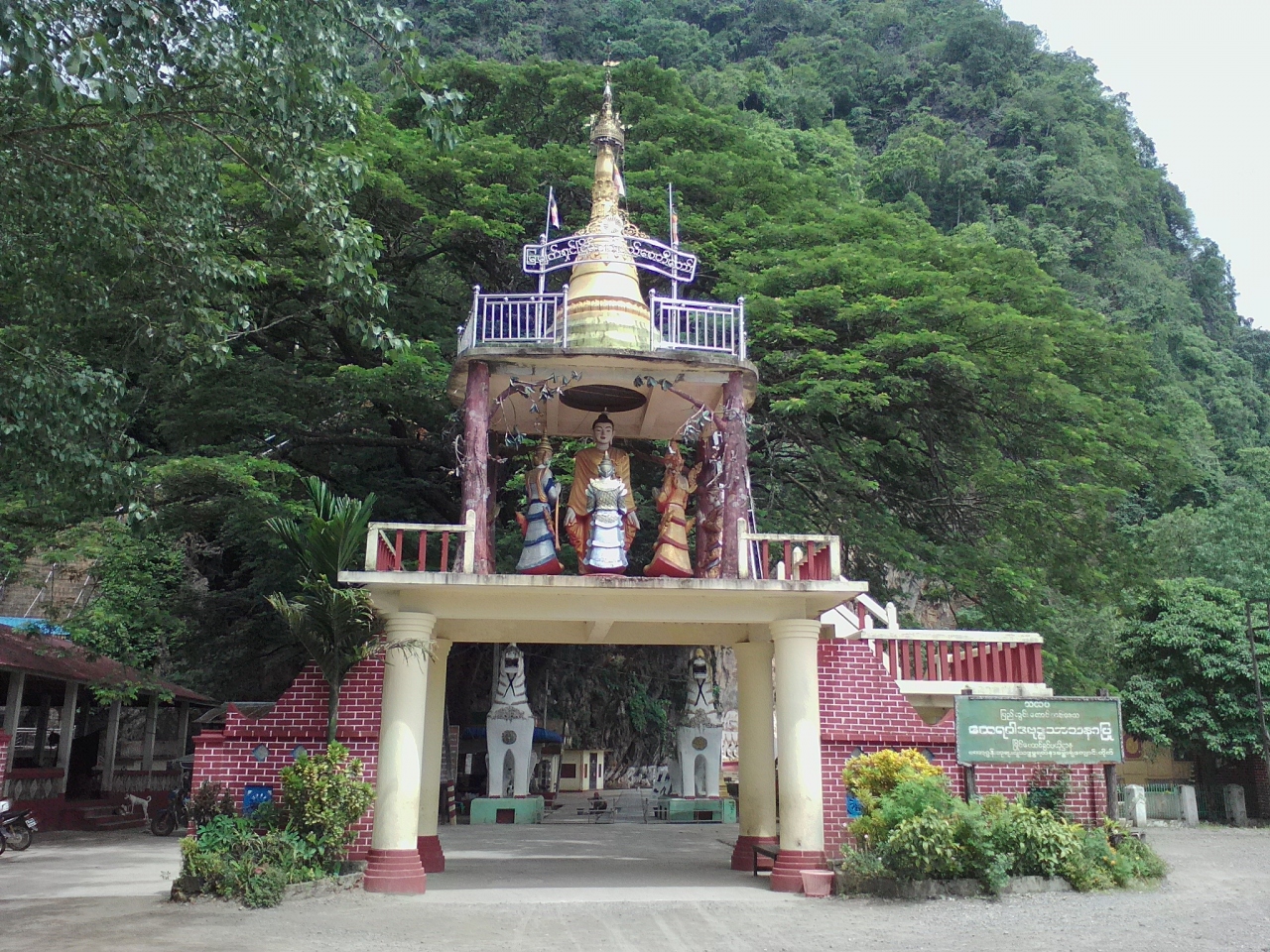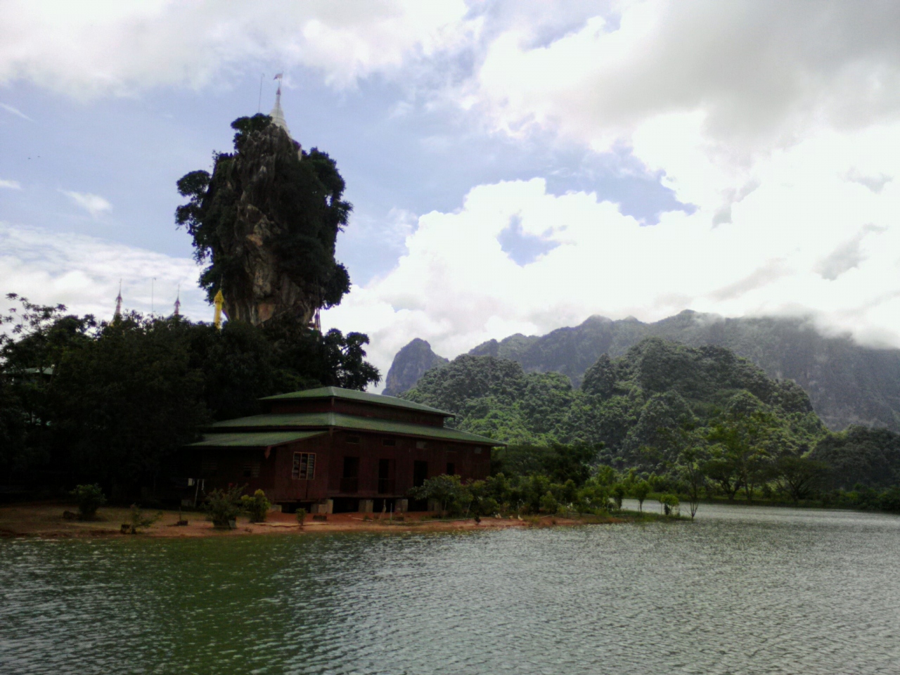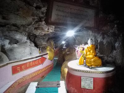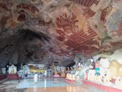 その独特の形とインパクトの大きさから、パアンを象徴するパゴダかなと思います。池の中心に立つ奇岩は美しいの一言。写真映えするスポットでもあります。ただ雨季で天気が悪かったのが残念でした。頂上にあるパゴダまでは登ることができませんが、中腹にあるパゴダまでは行けます。