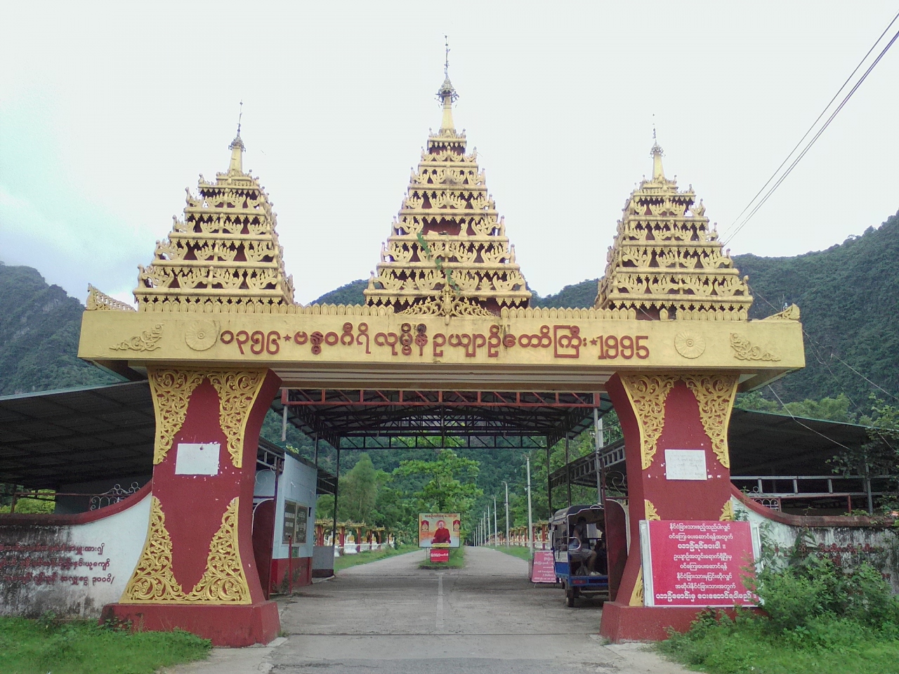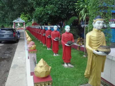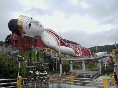 巨大な寝釈迦像があります。モーラミャイン観光の最大の見どころと言ってもいいと思います。市街中心からは南へ約22km。自分でバイクを借りるかタクシー、バイタクを利用するのが一般的ですがバスでも行けます。Zeigyi(ゼイジー)Central Marketの東側の路上に停車していたチャイッカミ行きのバスに乗りました。行き先表示はミャンマー語のみです。事前にウィンセントーヤまでと伝えておけばゲート前で降ろしてくれます。所要1時間20分、1500k。1時間に1本あります。このバスはハイウェイバスターミナルにも寄ります。帰りはゲート前で同じバスを待っていたのですが、乗り合いトラックバスが停車。モーラミャインへ行くと言うので乗りました。市内の適当なところで降りてしまいましたがおそらく終点はゼイジー市場西側のトラックバスターミナルだと思います(1000k)。ということはトラックバスターミナルからでも行けると思います。トライしてみて下さい。
