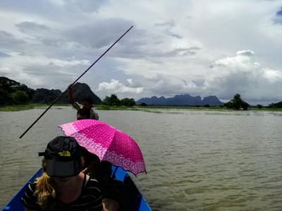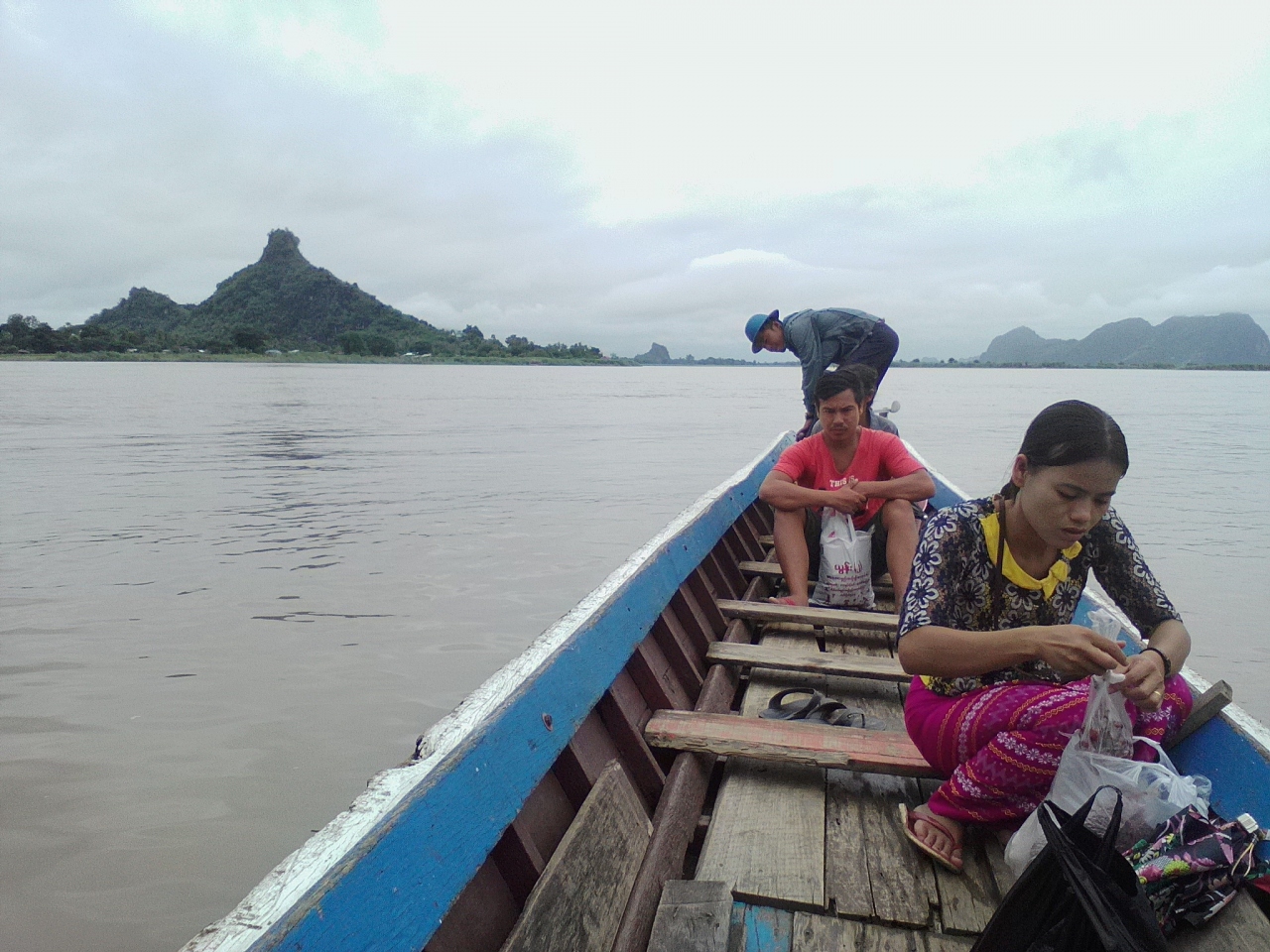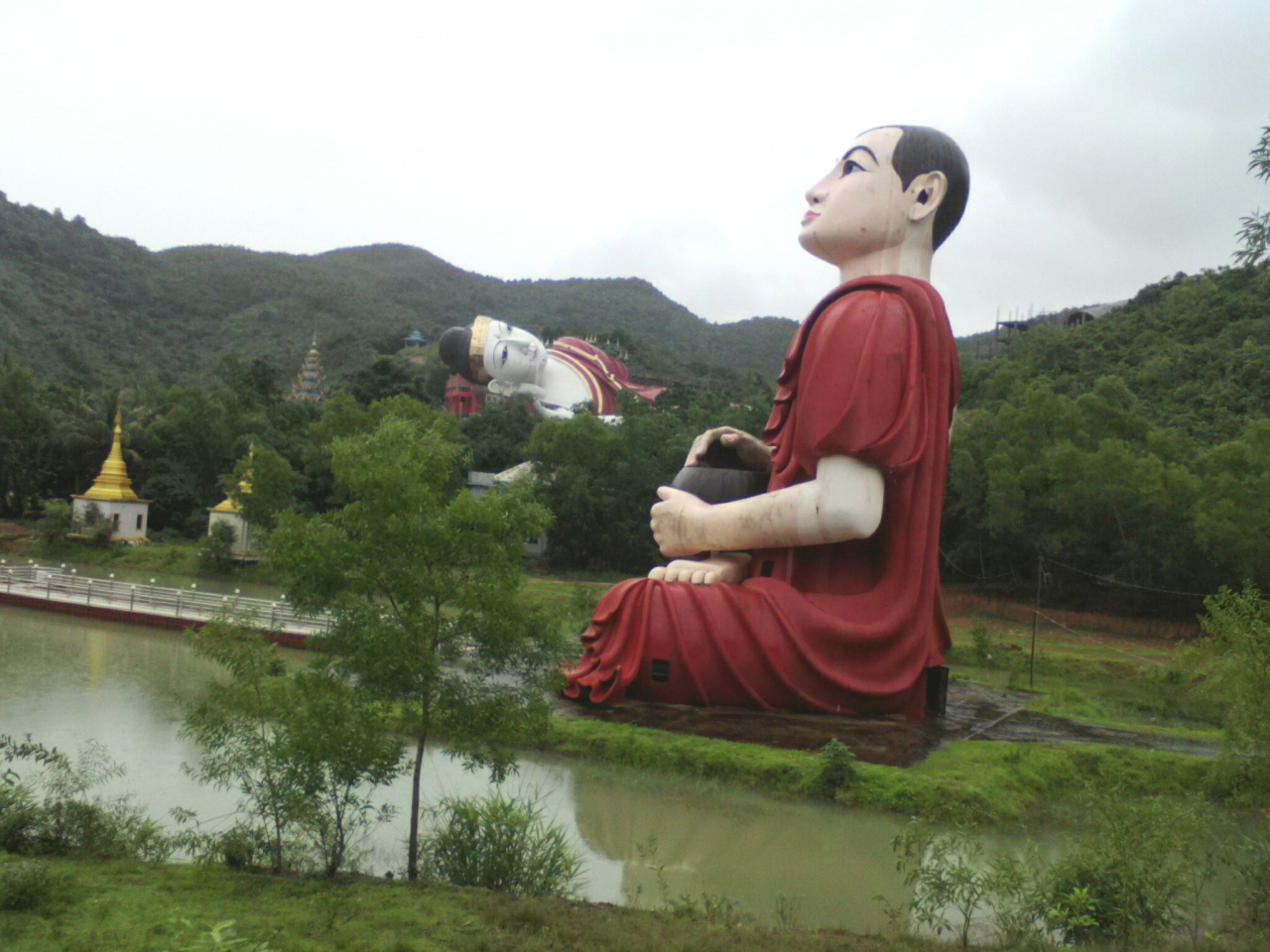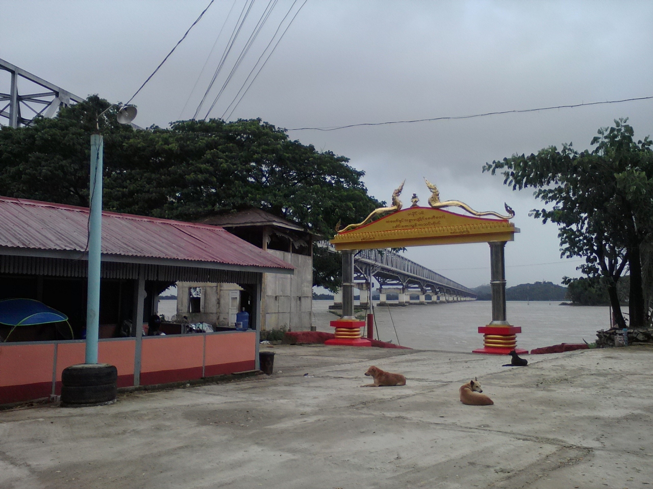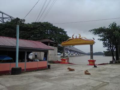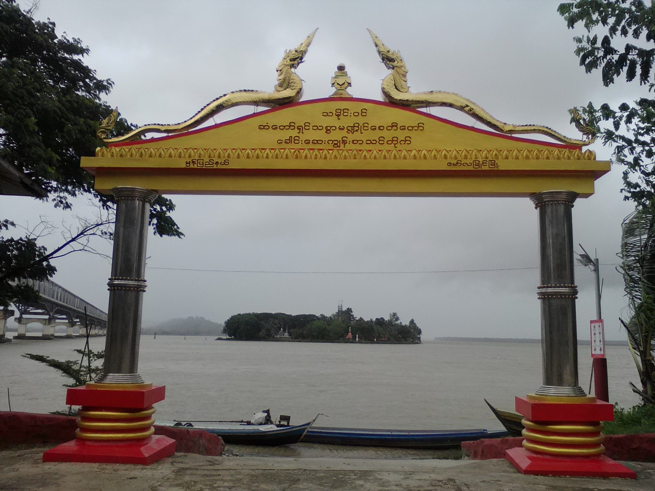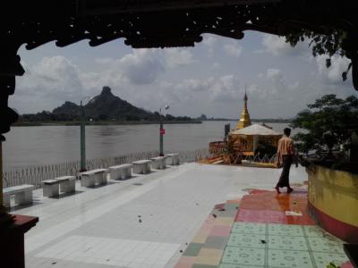 モーラミャインのサルウィン川にかかる大鉄橋の下にある島。陸からはおよそ500m。島にはサンドウシン パゴダをはじめとした数多くのパゴダなどがあり、“パラダイス”的なテーマパークのようでもあります。橋の下から渡し船が出ています。料金は1人往復2000kと言われましたが1人だと運行してくれません。1人だと貸し切り扱いになり5000kのようです。この時期は雨季で小雨が降っており客は私だけ。おまけに川が増水しており怖いくらいの流れ。こんなボートで大丈夫かなと不安になりました。どうせ行くなら客の多い天気のいい日の方がいいと思います。