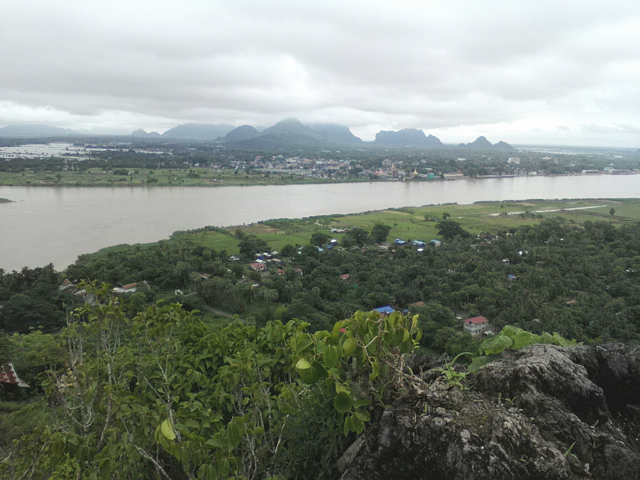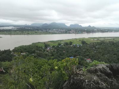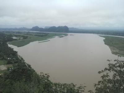 頂上から見るサルウィン川、田園風景、パアンの町並みとその先にある山々の眺めはまさに絶景です。- 旅行時期