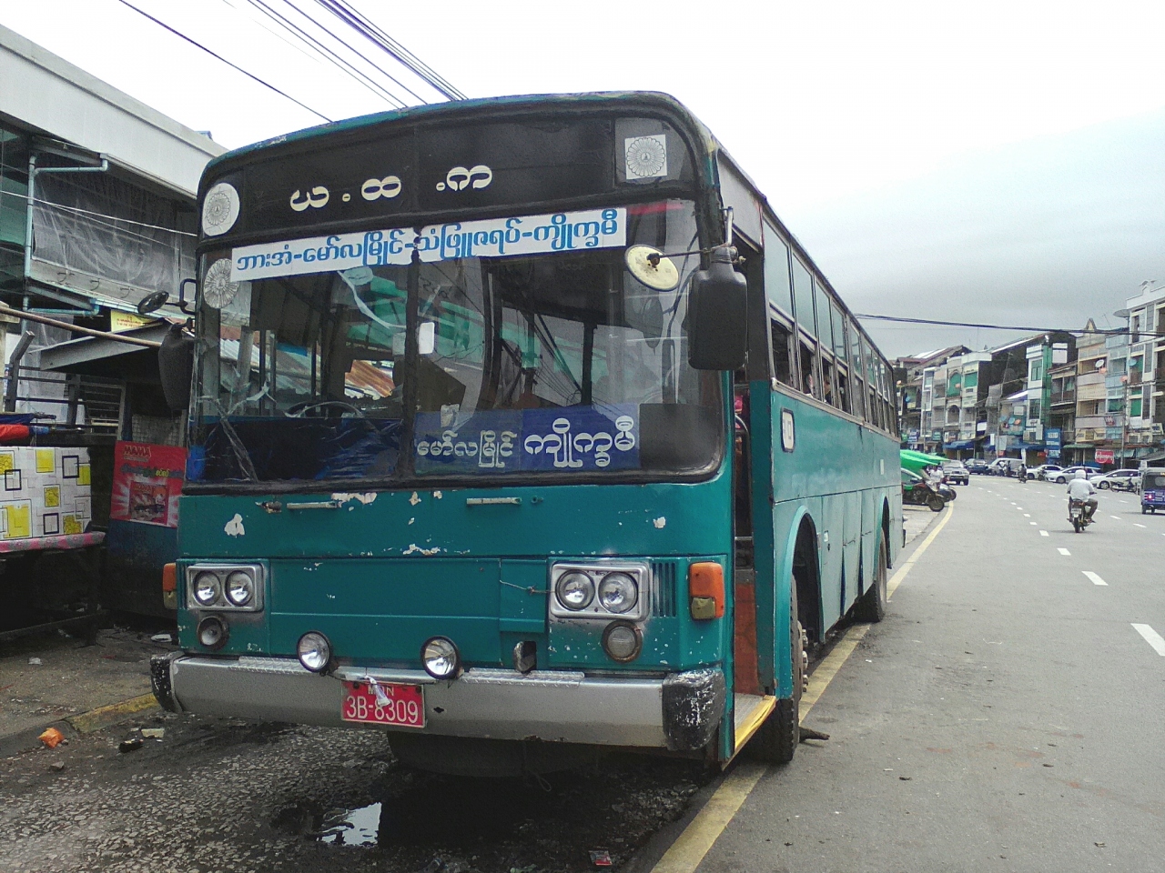 ヤンゴンとモーラミャインを結ぶ幹線道路沿いにあるチャイトーと言う町に宿泊して訪れました。キンプンへのトラックバスは市場前から出発。所要約25分、500k。このバスはチャイトー鉄道駅に立ち寄ります。