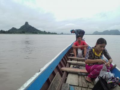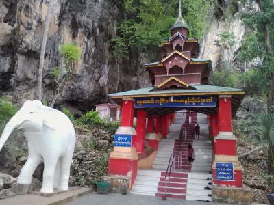 パアンの町からサルウィン川越しに見えるヘンテコな形をしたパブー山(Pha Bhu)の上にあるパゴダです。川沿いに出れば見えると思いますがシュエインミャウパゴダまで行けばばっちり眺められます。眺めるだけでは物足りない方はパゴダのある頂上まで登ることもできます。パゴダのためのというよりは眺め目的(特に夕日)のスポットだと思います。シュエインミャウパゴダの北側から対岸への渡し船が出ています(片道500k)。ある程度人数が集まると出発します。何時まで運行しているかわかりませんが夕日を見たい方はバイクなどで行った方がいいと思います。