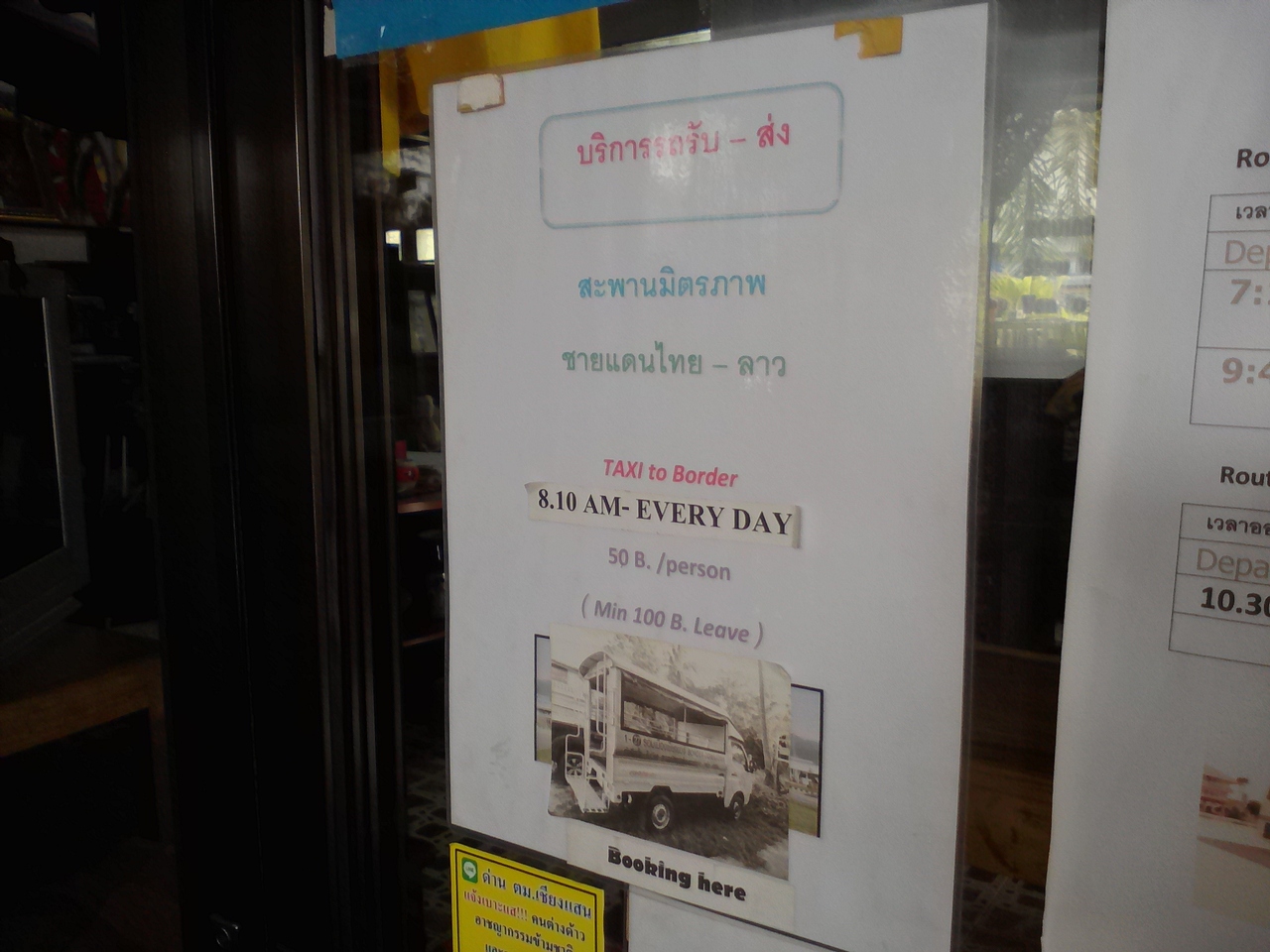 また、Namkhong G.H & Resortではソウテウではありませんが国境へのミニバスサービスがあります。毎朝8:15出発、60B。宿泊客以外でも利用できます。