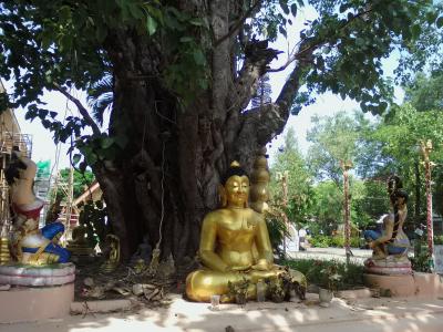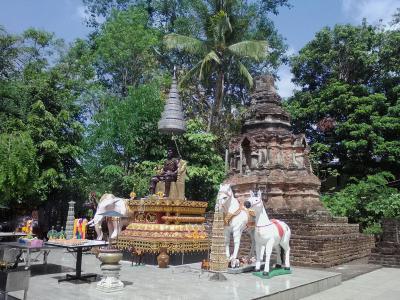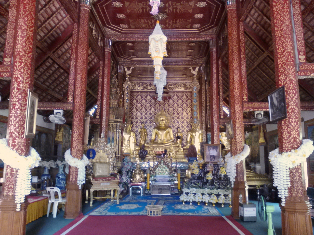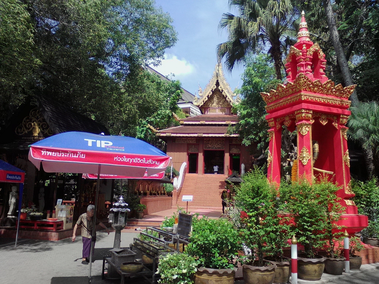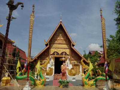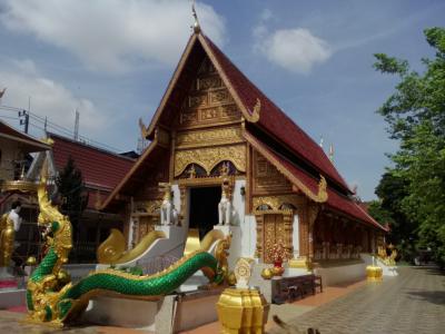 町の北側、コック川近くにある古刹。本堂正面入口の破風の造りが美しい曲線を描いているのが特徴です。内部に置かれている仏像はチェンマイにあるワットプラシンとそっくりなもの。兄弟寺と言われる所以です。敷地内にいくつかある菩提樹の根本にはさまざまな仏像が並べられています。