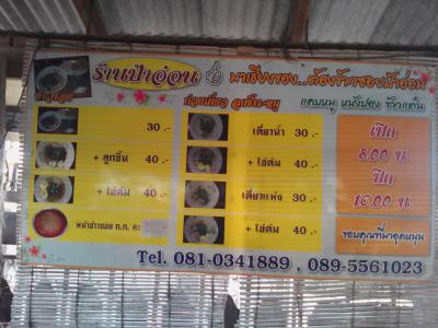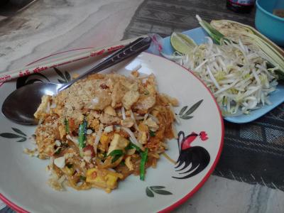 メインストリート、Government Saving Bankの向かいにあるパッタイの人気店。パッタイだけでなくいろいろなメニューがありますがやはりここは店のイチオシであるスタンダードなパッタイ(35B)をオーダー。人気店らしくお昼時は結構混んでいてやや待たされました。水と野菜はセルフサービスです。さてお味は…うまいんですがそんなにパッタイを食べないので他店と比べてどうとは言えません。けどうまいです。量がそんなに多くないので少し物足りない感がありましたがもやしをお代わりしたらお腹いっぱいになりました。こういう時はセルフは便利です。Free Wifiも使えます。