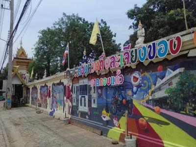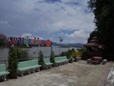 メインストリート沿いにあるお寺。アートな壁画が目立ちますが、なんとドラえもんも描かれています。日本人なら見ておかなければならないマストスポットです。境内には飾り気のない地味な仏塔が。これはこれで味があります。裏側からはメコン川が一望できます。見晴らしがよく、チェンコンでも随一の眺めだと思います。小さな東屋もありずっとメコン川を眺めていられそうなところです。