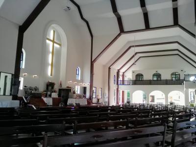 教会を訪れるなら日曜の朝。ということで8:00頃行ってみましたが…人ひとりおらず、しーん…。ミサが行われるのならその準備とかで必ず人がいるはずですが、いないということはないのでしょう。ミサの時間などの案内表示もなくいつ行われるのかまったく不明です。しかし扉が開けられていたので内部は見学できました。新旧2つの建物があるのでどちらもどうぞ。厳かな雰囲気は感じることができました。