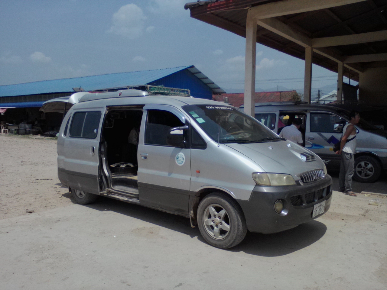 フエサイの中では大手のしっかりした旅行会社だと思います。この会社ではタイ国境(ラオス側のイミグレ)までのミニバスを運行しています。1人だと5万kip、2人なら2.5万kipずつと言われたのでてっきり5万kipを人数割りかなと思っていました。後日行ってみると翌日はすでに3人の予約があると言うので私も予約しました。私を入れて4人、これならかなり安く行けるなと思ったのですが1人3万ずつだと。1.25万やろと抗議しましたがダメでした。仮に4人いればトゥクトゥクの方が安く行けると思います。