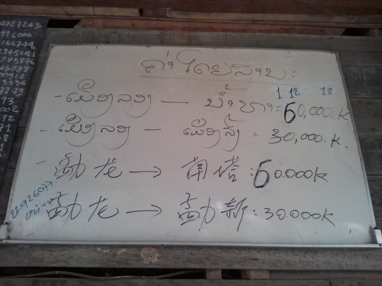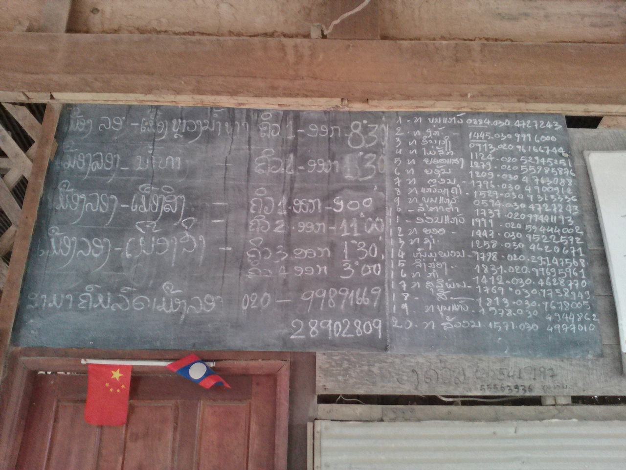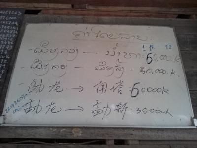ルアンナムター?8:30,13:30(?読み取れず不明) 6万kip