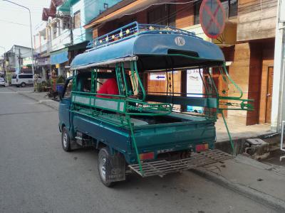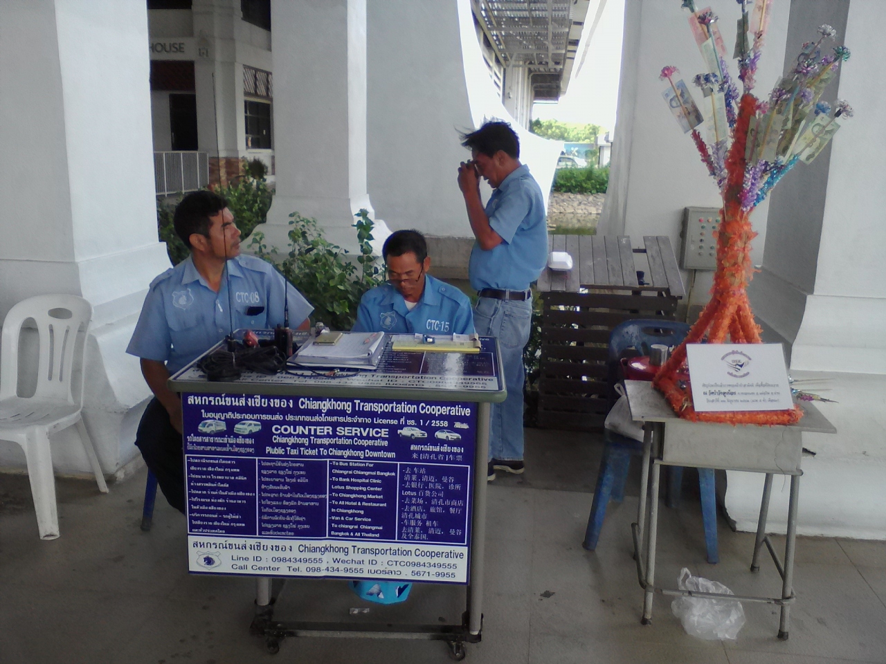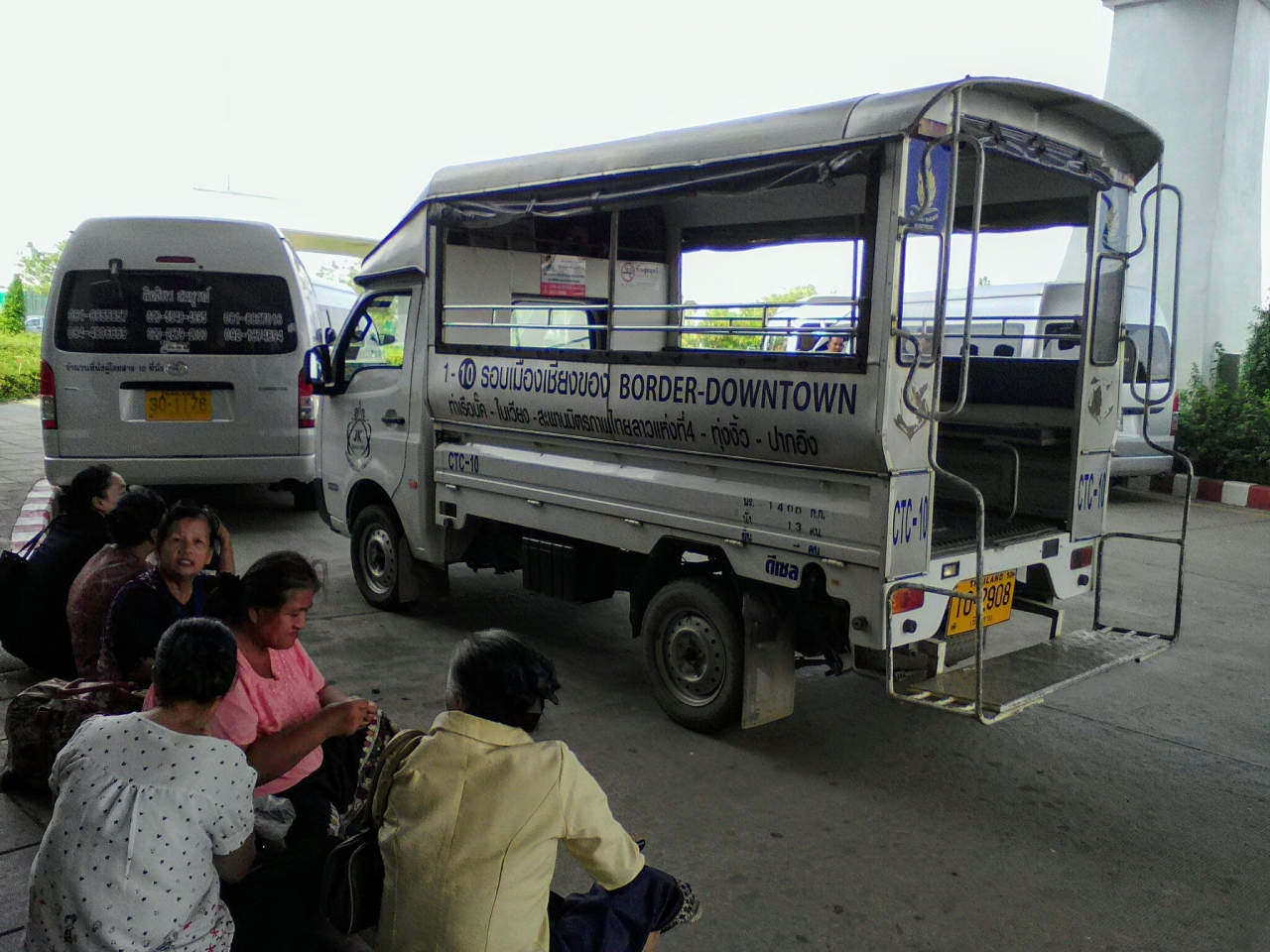 安心して下さい。ちゃんと「BORDERーDOWNTOWN」と書かれた乗り合いソンテウがあります。イミグレの前でチケットを売っています。料金は1人60B。しかし6:00-8:00,18:00-22:00は1人100Bとなりますのでご注意を。出発時間は決まっておらず、客が5人ほど集まれば出発となります。チェンライ、チェンマイ、バンコク行きのバス乗り場やホテルなど希望の場所で降ろしてくれます。- 旅行時期
