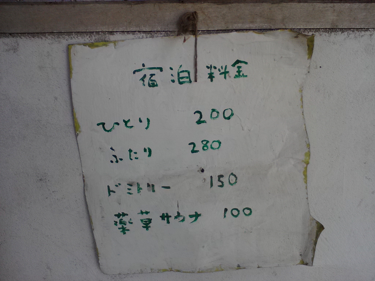 バスターミナルには以下のような発車時刻と料金が書かれています。