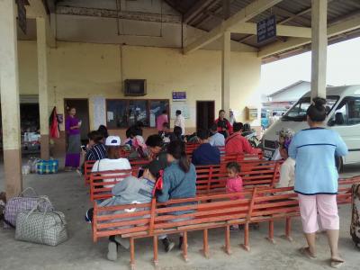 9:00発のムアンローン行きのバスに乗るために8:15にバスターミナルに行き、窓口でチケットを購入。「9:00発ですよね?」と尋ねると「9:00発はない。11:00」と。そりゃないよ。今日だけなのかいつもなのかは不明。仕方ないので一旦宿に戻り、10:30に出直した。しかし11:00になってもバスは出発せず。ドライバー曰く「人が少ない」と。どうも満員にならないと出発しないようです。だったら時刻書いてある意味ねーじゃん。乗用タイプのワゴン車なのに人が足らないってどんだけ少ないかってことです。ラオスの辺境ムアンシンはそういうところです。で、結局出発したのは13:00。トホホ…です。アジアのバスをナメたらあかん…。