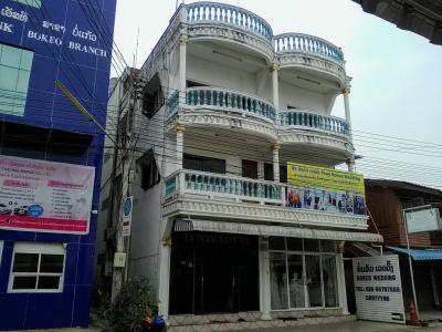 ファンのダブルで1泊8万kip(or 320B)。室内は広くてとても清潔、シンプルな感じもとてもいいです。シャワールームも広くて清潔です。3階にはくつろげるバルコニーがあります。他のG.Hに比べるとやや高いですが、その分しっかりした、間違いのないG.Hです。