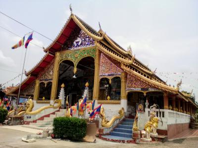 町の南、ルアンナムター方面とシェンコック方面へ行く交差点の近くにあります。境内は広く、金色の仏塔やトタン屋根の古いお堂など数多くの建物があります。大きな菩提樹や色鮮やかな火炎樹もあり建物以外でも楽しめます。