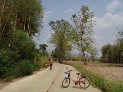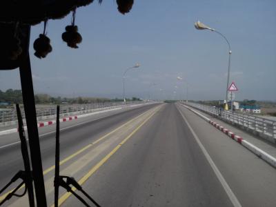 ラオスからタイにやって来るときにバスでこの第4友好橋を渡って来たのですがなんか物足りない。“道路”は眺められましたが橋の全景がわからない。というわけで宿泊していたG.Hで無料で自転車を借りられてたのでちょっと出かけてみました。G.Hから橋のたもとまでは約9km。大きな国道ではなくなるべくメコン川沿い側のローカルな道を走りました。ショートカットにもなるし景色もよくとてもよいサイクリングコースです。距離的には大したことはありませんが自転車が小さくてボロいのと暑さのせいで結構バテました。橋自体はこんなもんかって感じです。サイクリングのついで程度に考えた方がいいかなと思います。