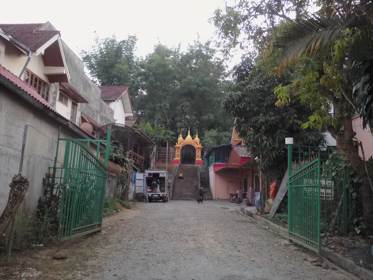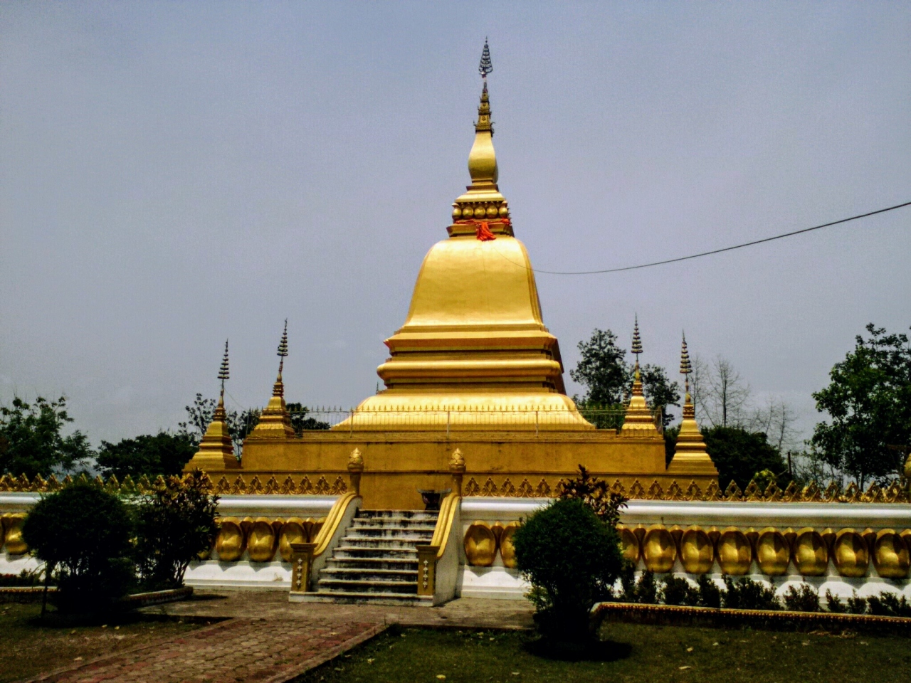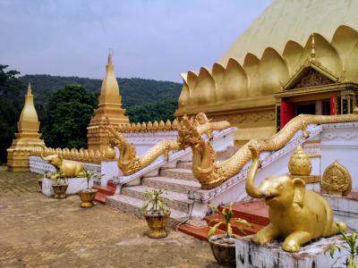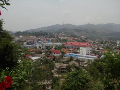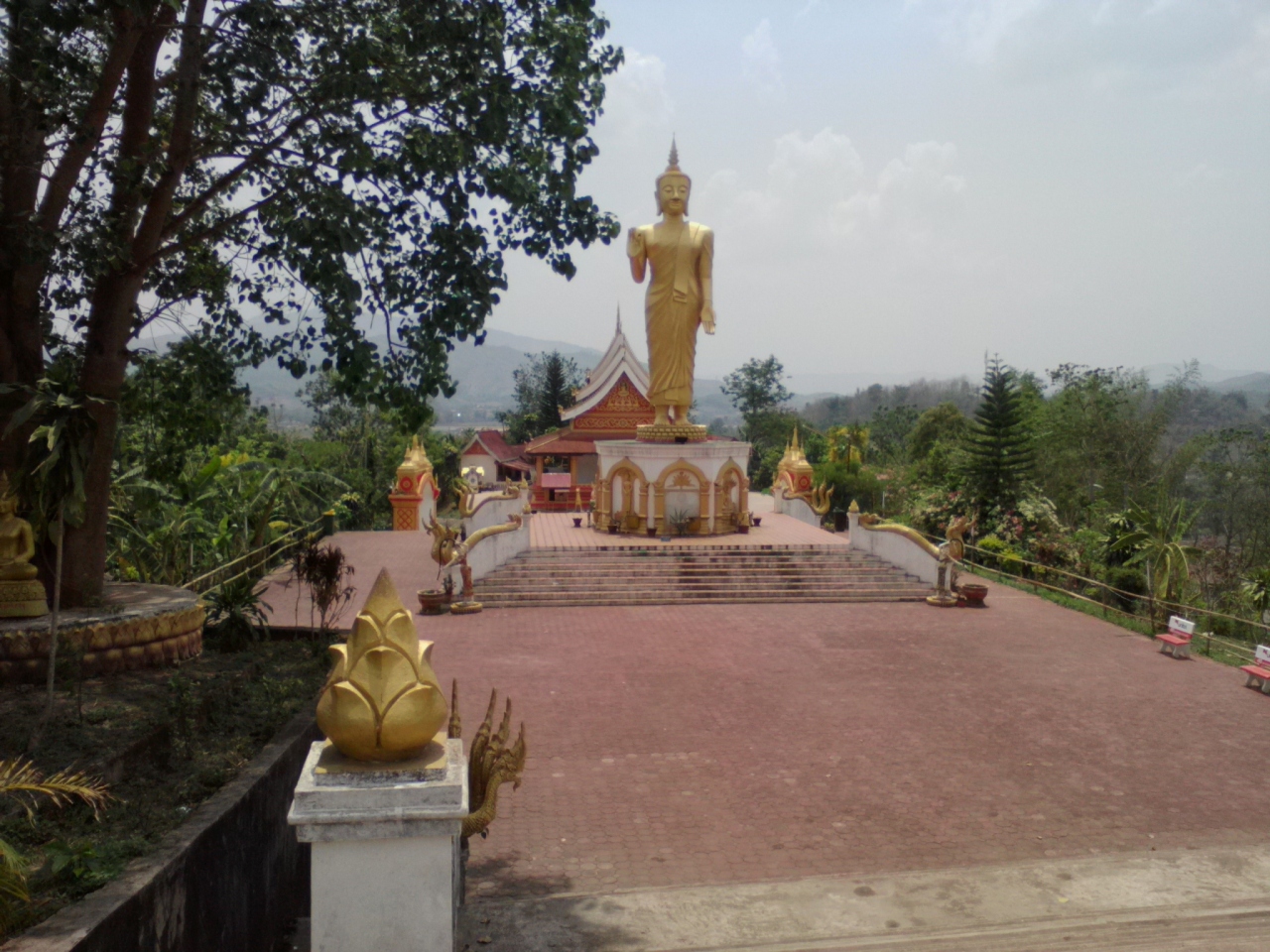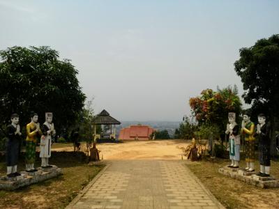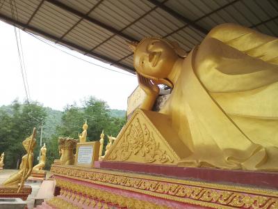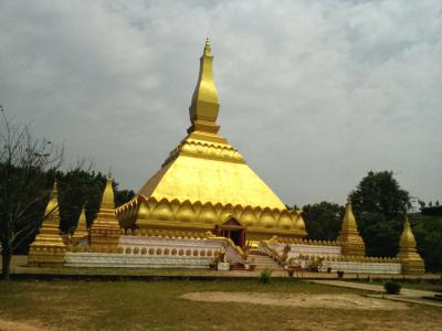 ルアンナムターの北西の町外れにある大きな黄金の仏塔。十分歩いて行ける距離ですが少し丘を登ります。町中にある数少ない観光スポットの一つですがまあ普通の仏塔です。人気は全くなく静まりかえっています。塔の裏手には涅槃像もあります。この時期はあいにくガスっていて丘の上からの町並みの眺めもいまいちでした。ツーリズムオスィスの地図や看板ではルアンナムター ストゥーパと紹介されています。