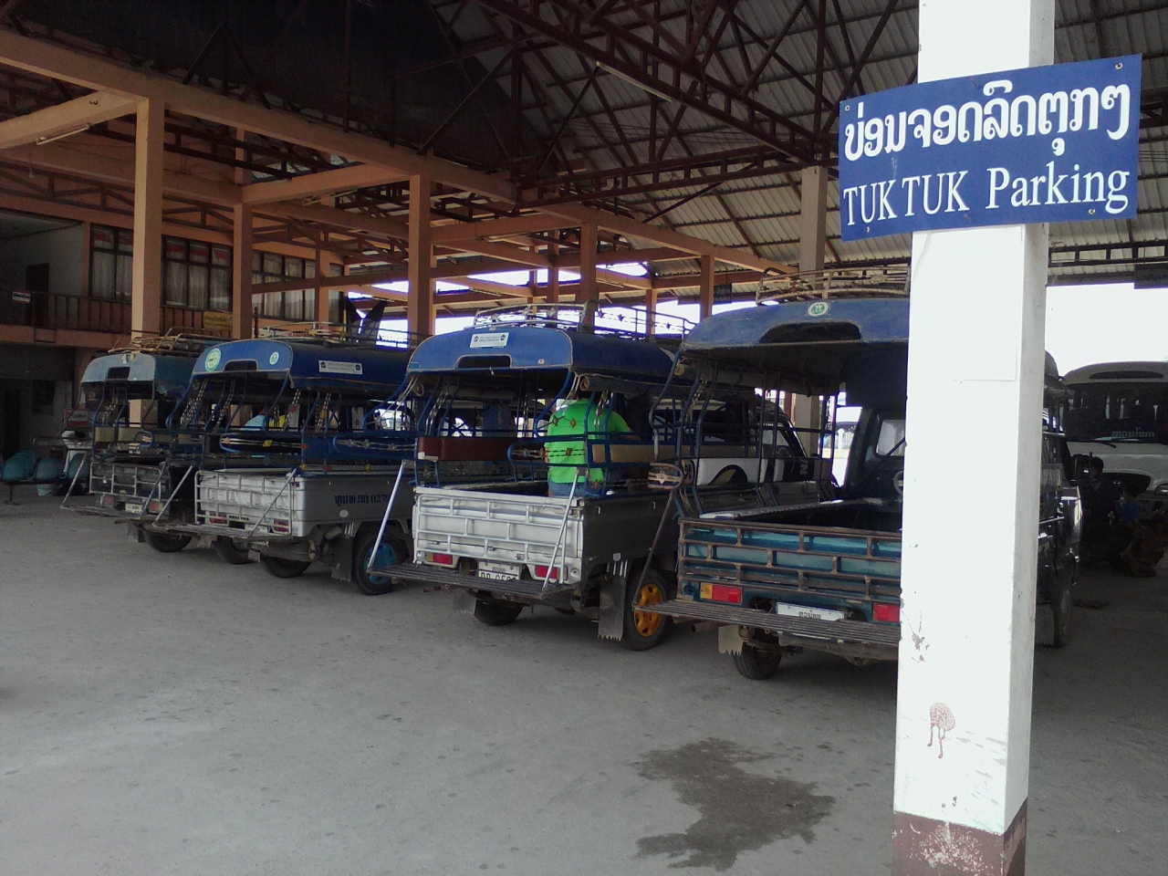 ルアンナムターの長距離バスターミナルから市内中心へは約9km離れているのでトゥクトゥクを使う必要があります。トゥクトゥクは常に数台待機しているのですぐに乗れますが問題は料金。私の場合はウドムサイからの到着バスで、他の乗客5人(私を含めて6人)とシェアできたので1人あたり1.5万kipになりました。運転手に尋ねると、1人の場合は5万kip、3人だと2万ずつだそうです。何人でシェアできるかは運次第ということになります。